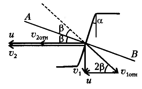 Vậntốctươngđối lậpvớipháptuyếnABcủamặtkínhmộtgóc nàođóchínhlàgóc Ov2 phảnxạ.Từphầnđộnglựchọcchúngtađãbiếttrongvachạmđànhồicủamộtvậtvớibề mặtcủamộtvậtnặng,đứngyênthìgóctớibằnggócphảnxạ,cònđộlớnvậntốctớivà vậntốcphảnxạbằngnhau.Vìvậyvậntốc củahạtmưađáđốivớiôtôngaytrướckhi Ov1 vachạmcũnglậpvớipháptuyếnABcủamặtkínhmộtgóc vàvềđộlớn: =