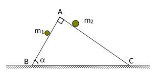 Bài14. MộtnêmcótiếtdiệnlàtamgiácABCvuôngtạiA,vàhaimặtbênlàABvàAC. Chohaivậtm1 vàm2 chuyểnđộngđồngthờikhôngvậntốcđầutừ