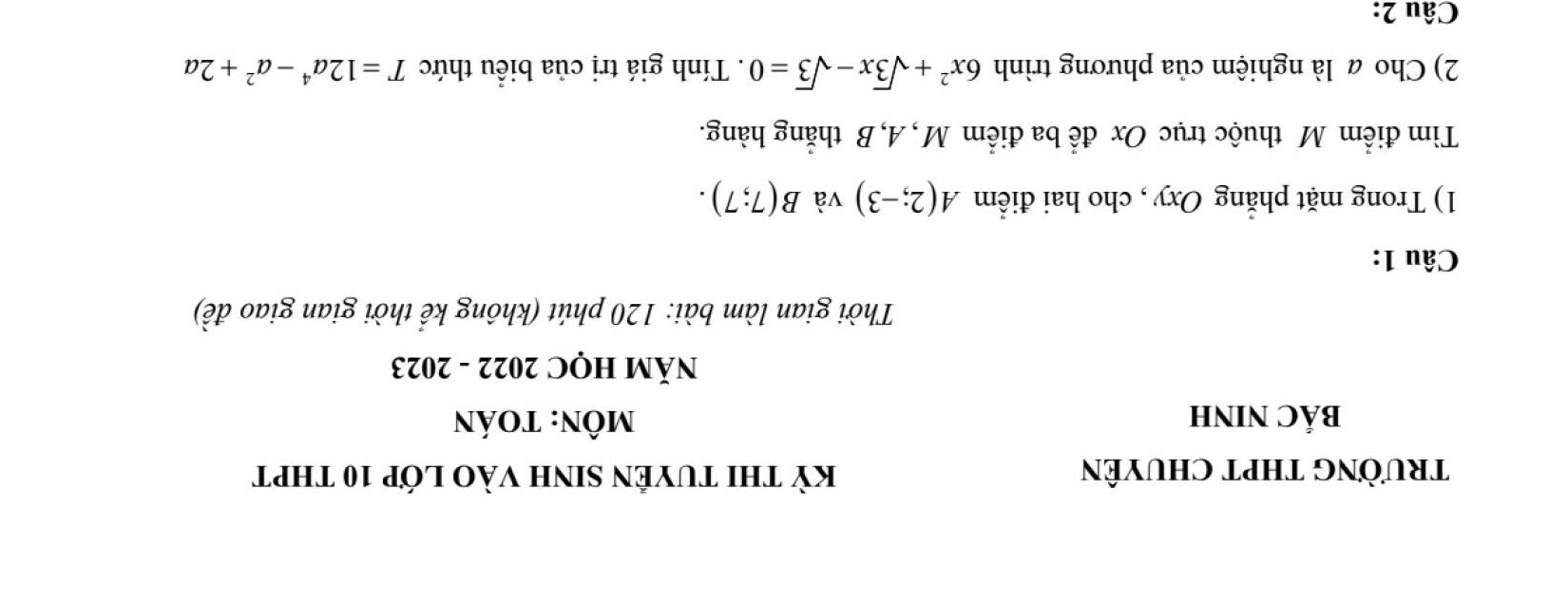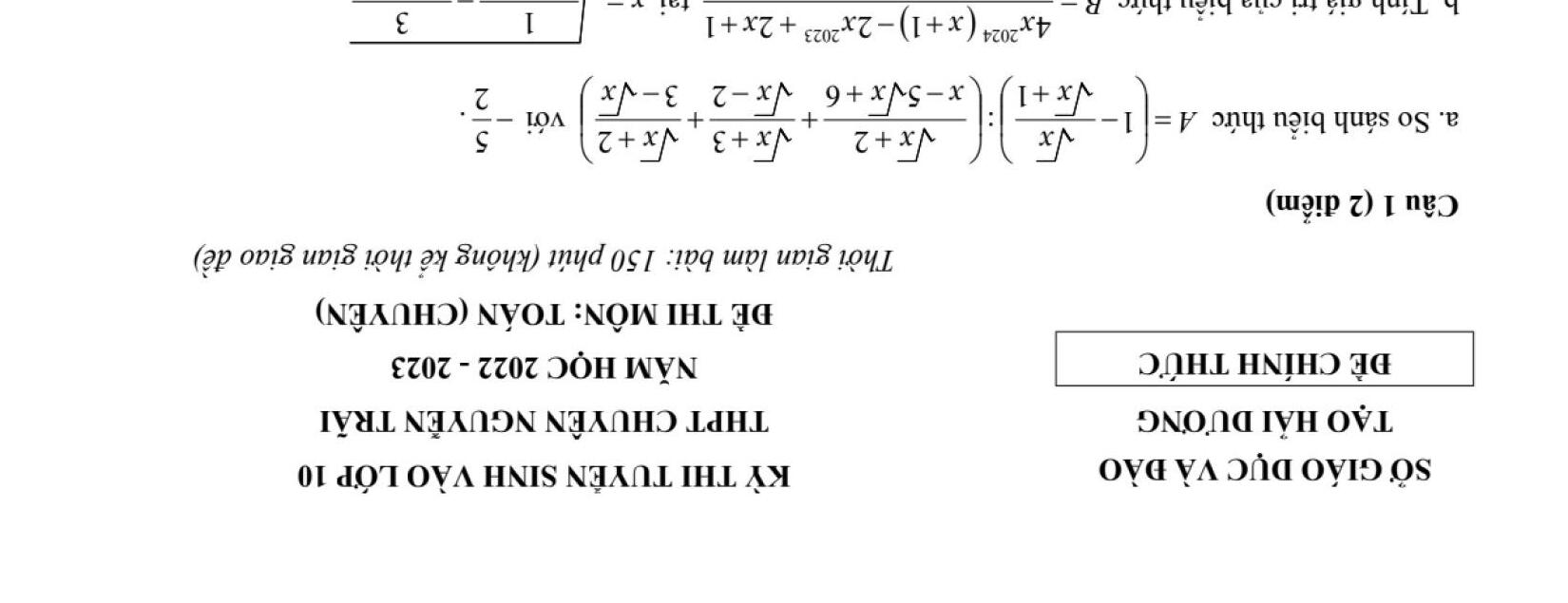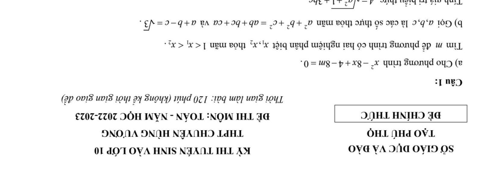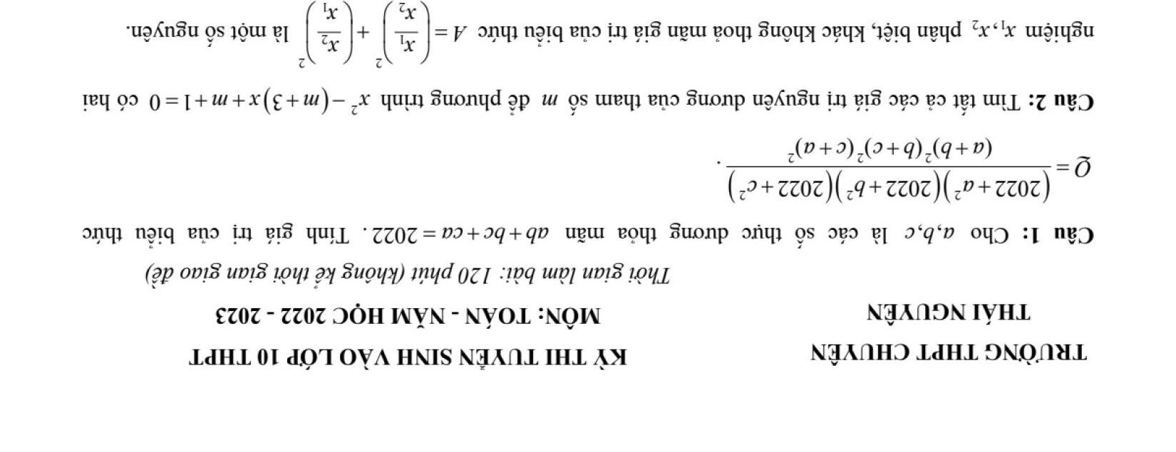 ĐỀ THI CHÍNH THỨC VÀO 10 MÔN TOÁN (ĐỀ CHUYÊN) TỪ CÁC TỈNH THÀNH TRÊN CẢ NƯỚC NĂM HỌC 2022 - 2023