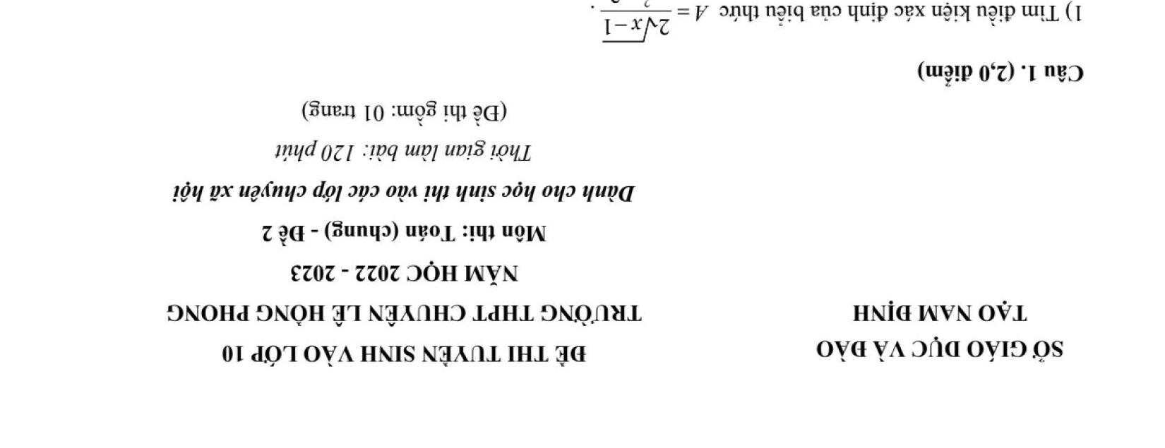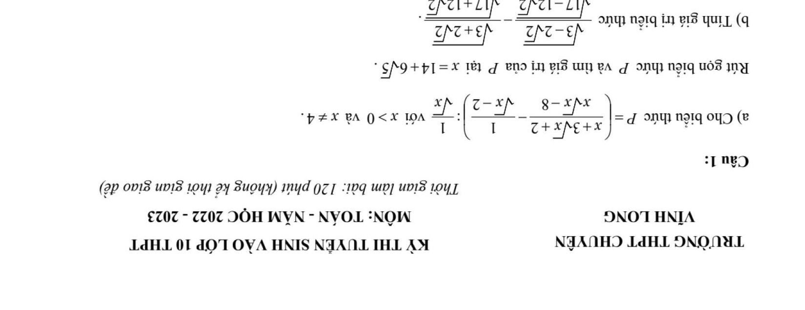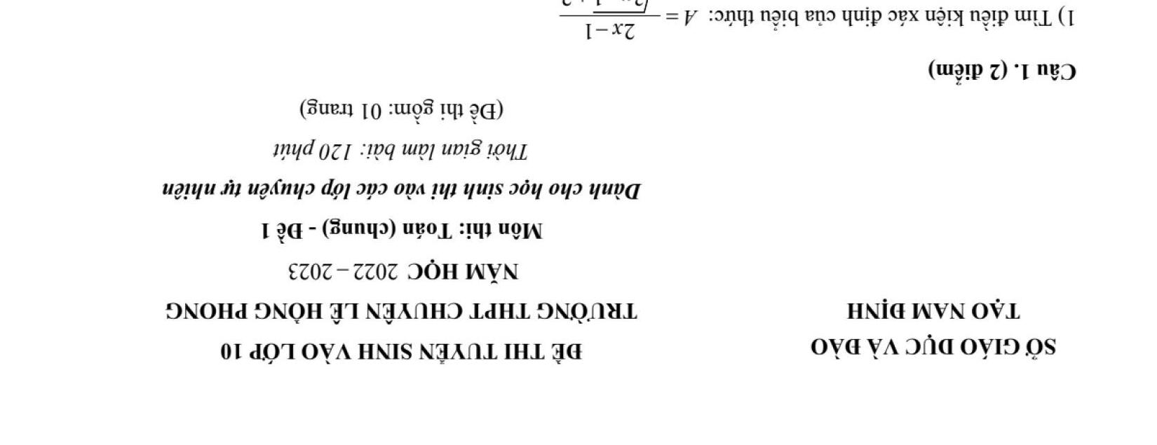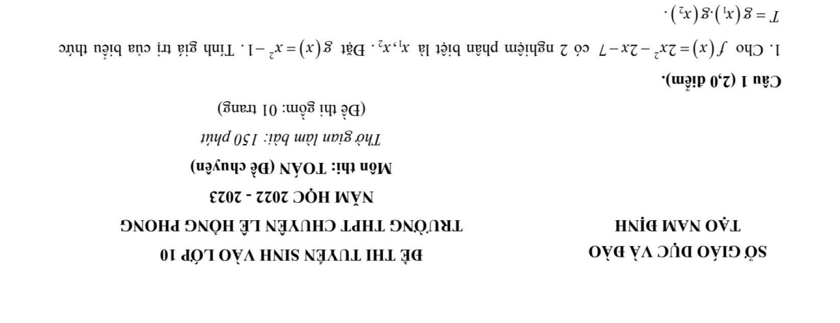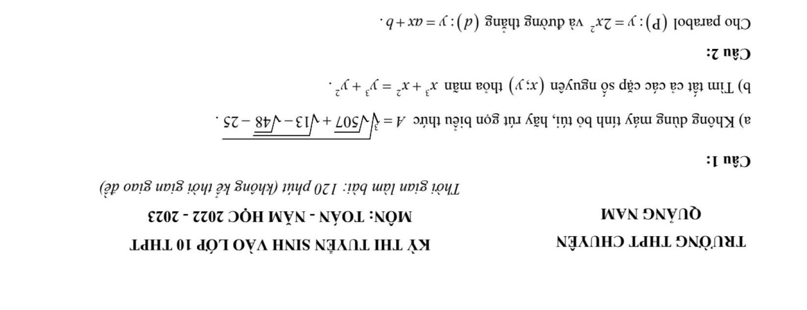 ĐỀ THI CHÍNH THỨC VÀO 10 MÔN TOÁN (ĐỀ CHUYÊN) TỪ CÁC TỈNH THÀNH TRÊN CẢ NƯỚC NĂM HỌC 2022 - 2023