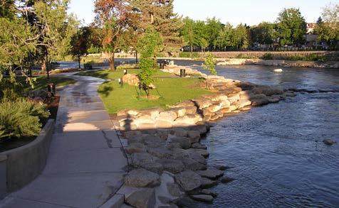 1.2.1 Riverwalk. Implement a multi-use greenway and connected trail system throughout the river corridor to enhance access to the river and expand pedestrian and bicycle mobility.