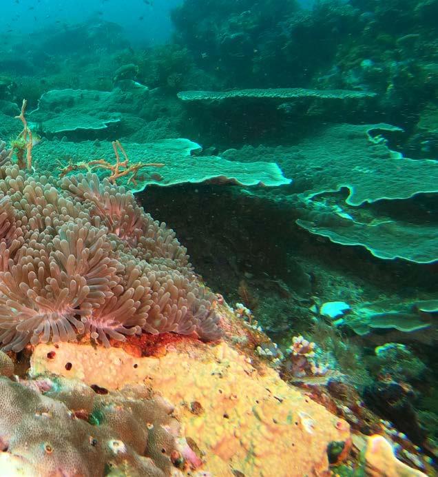 asombrosa diversidad, los jardines arrecifales superan a cualquier paisaje de tierra firme en delicadeza y colorido. Sostenido por el agua, el tejido vivo adquiere las formas mas inusitadas y sutiles. El colorido de los seres fijos de los arrecifes es desbordante. El resultado final es un mundo magico, de cuento de hadas, en donde lo imposible se puede volver realidad .Y dan refugio a un sinfín de vida marina, de diversas formas y colores, como tortugas, anemonas, en donde viven los peces payasos, almejas gigantescas y mantas gigantes .