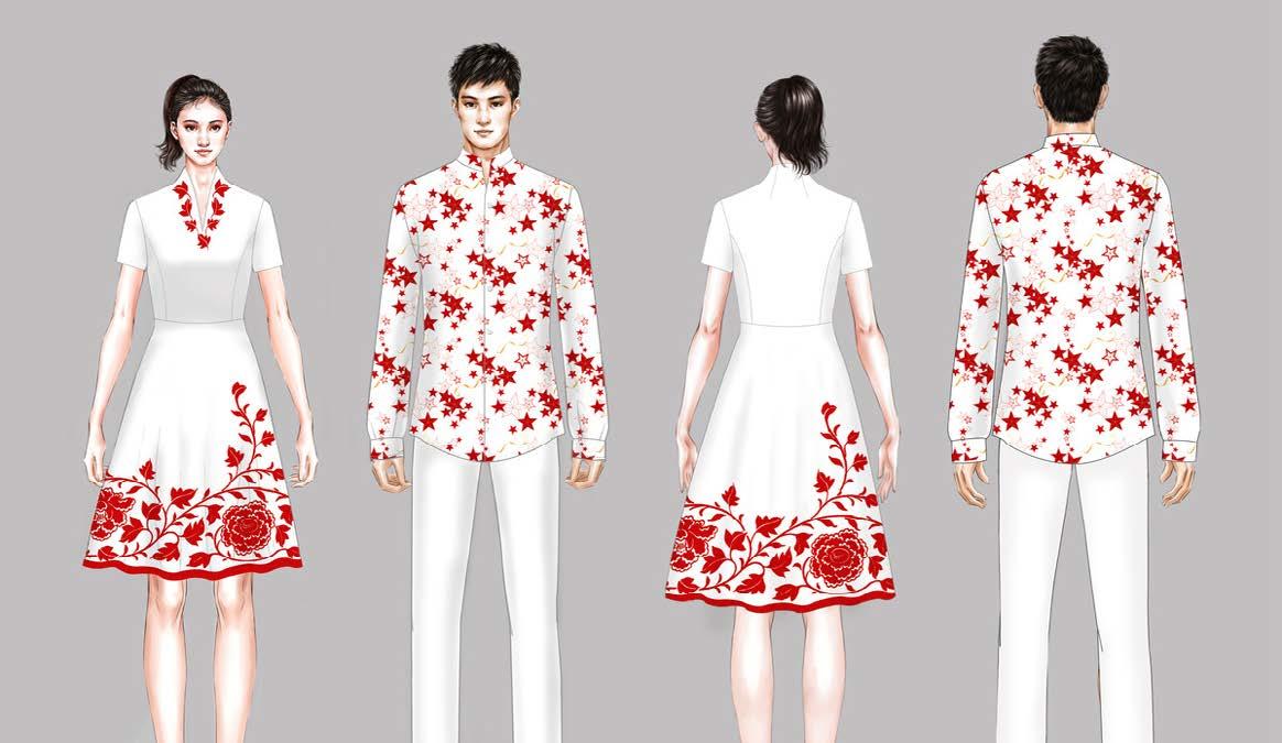 una chaqueta para las ceremonias de apertura y clausura. Estos uniformes, patrocinados por la marca china de ropa deportiva Anta, han sido bautizados como “Champion Dragon Clothes”, conservando el diseño tradicional de los elementos del dragón chino, los colores predominantes son el rojo y el blanco, simbolizan la herencia cultural de China.