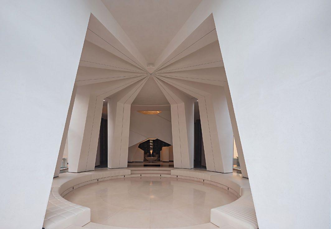 Una escultura de cincuenta y dos metros de largo y nueve de ancho se eleva hacia el cielo y se extiende por todo el espacio interior de la propiedad. La inspiración para la pieza proviene del brocado chino, que gira y danza, entrelazados y dispersos al mismo tiempo, delineando la forma de un bucle infinito, apuntando hacia el futuro.