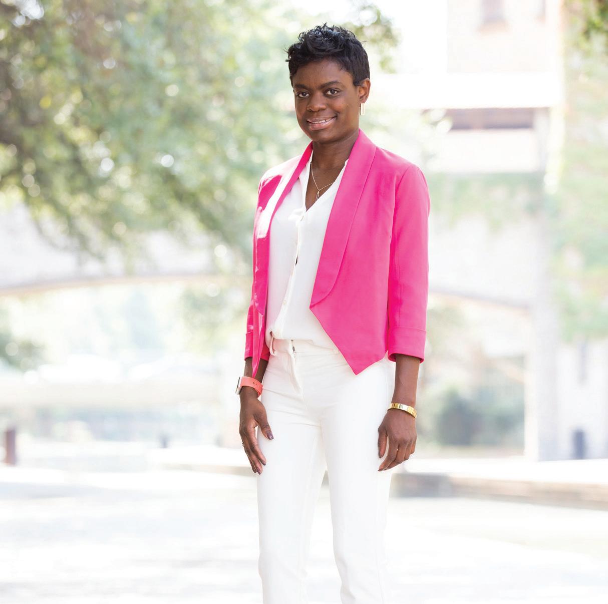 “I regularly interact with big-name speakers, up to the highest levels of government, so much of my work calls for decorum and buttoned-up styles of neutral, simple suits, and dresses. I’ll go a bit more colorful and fun on days that don’t contain highprofile programs. And for the rare internal office day, I’ll be a bit more relaxed and casual. My staff has seen me in flowy, wide-leg trousers and a fun top with sneakers.”