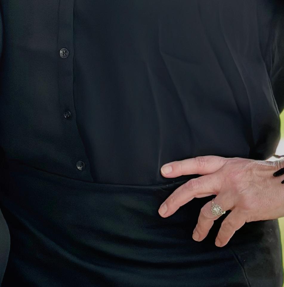 “I can never go wrong with a designer belt, small-face watch, diamond studs, two bracelets, and my everyday necklace.”