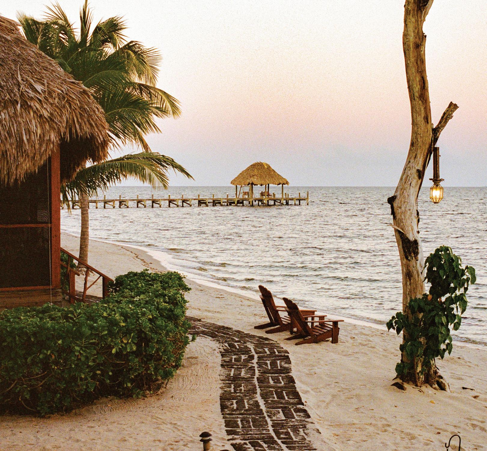Other amenities at Blancaneaux Lodge include sunrise guided birding experiences and river tubing, as well as horseback riding and mountain biking excursions. After a few days in the rainforest, we shifted gears and headed to another Coppola property, the seaside Turtle Inn. Situated along white sandy beaches and just a short walk or bicycle trip from the charming Caribbean fishing village of Placencia, the luxe, 25-room resort feels like a private estate. Well-appointed cottages feature handmade furnishings, outdoor garden showers, and screened-in porches for enjoying sea breezes.