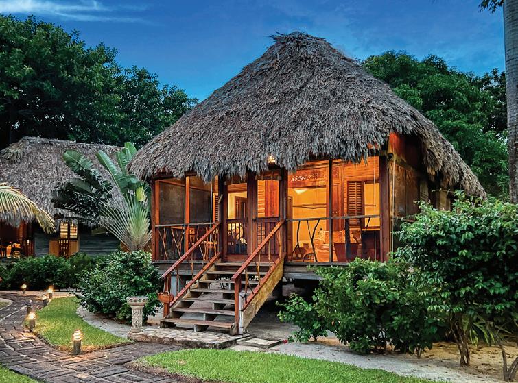 The 20 thatched cottages at Turtle Inn provide easy access to sugarysand beaches and calming views of the Caribbean.