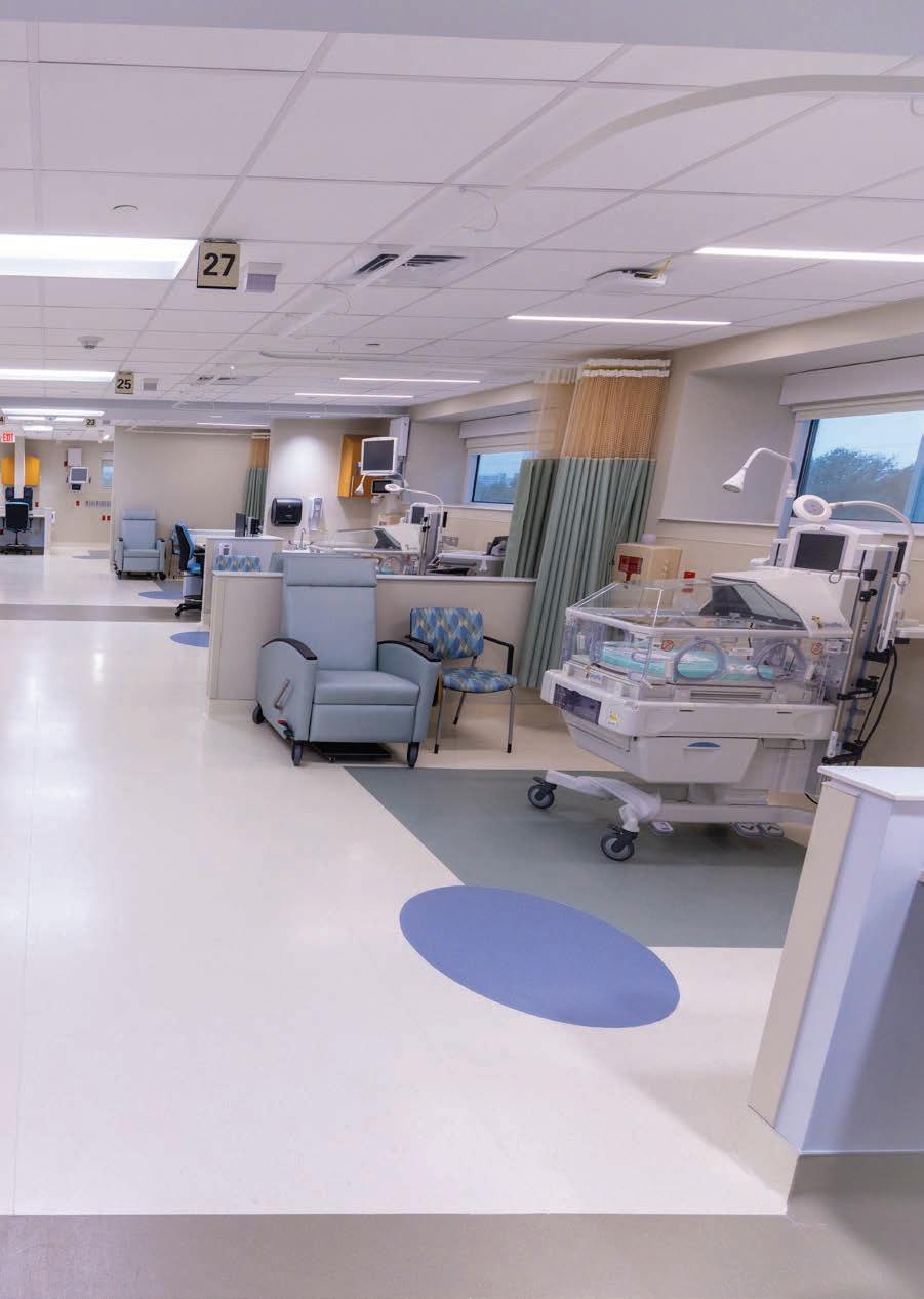 KENNETH ROSE: “Our hospital was built in a unique way through prefabrication. As we were designing this hospital, we wanted it to be consumercentric, and we wanted to be a hospital of the future. One of the things that The Beck Group told us was we should consider prefabrication as a part of our building process. At times, it can help with cost, but it always helps with efficiency. It means that parts of our building—and for us