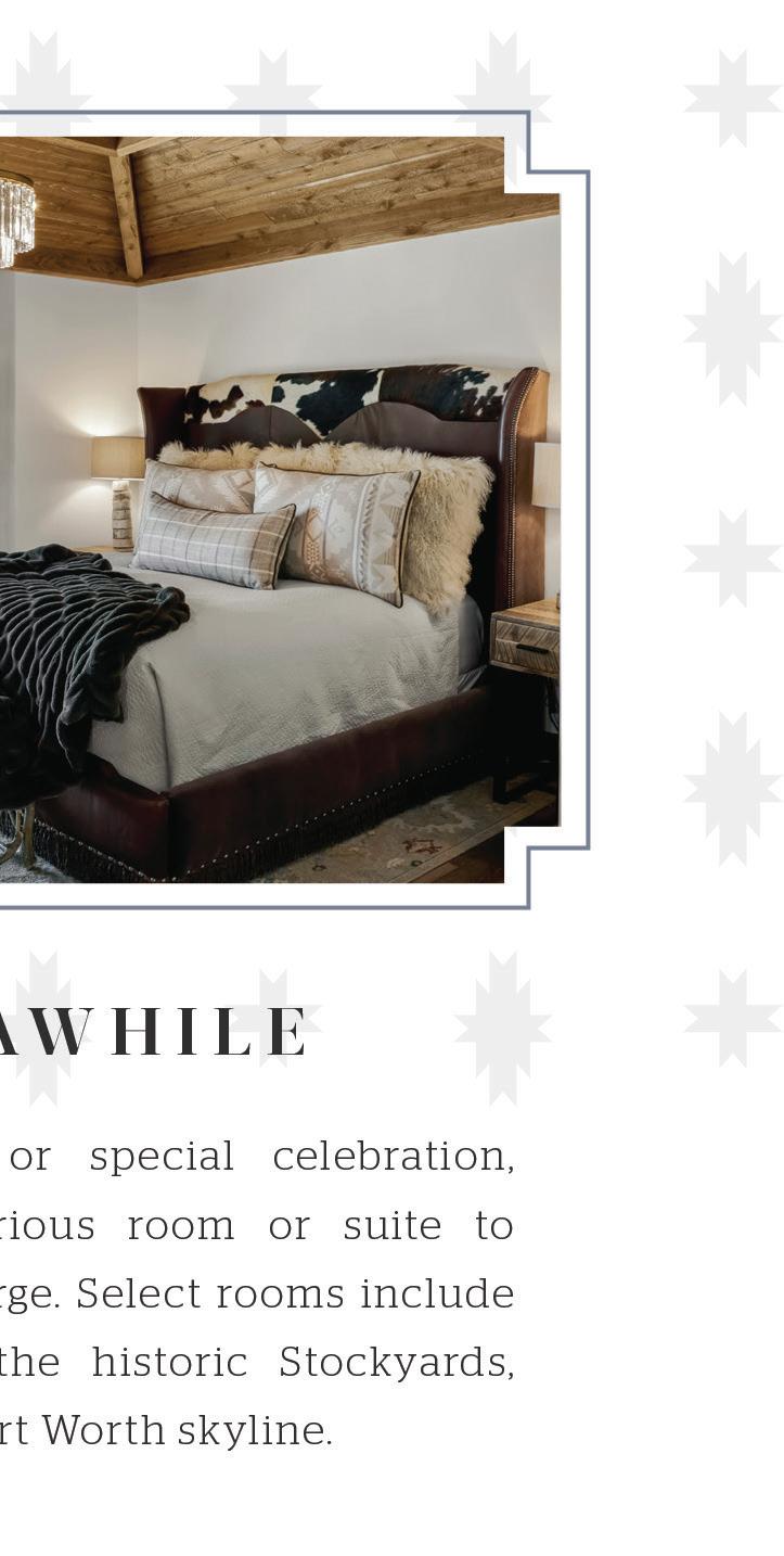 As an Austin native and a dual citizen, Merissa De Falcis is a little bit country—and a little bit Italian, too. So in planning her nuptials to college sweetheart Cole Bradford, she was torn between a wedding in Fredericksburg, Texas (one of the couple’s favorite weekend destinations) or a small celebration in Tuscany. Wanting a save-thedate option for either outcome, Merissa, herself a professional photographer, chose locations and looks that matched both vibes. For this shot, taken on the plains of Contigo Ranch in Fredericksburg, Merissa donned boots bearing her new initials—an engagement gift from her future in-laws. In the end, she and Cole hosted an intimate Italian ceremony, followed by a Dallas reception infused with a taste of Tuscany. “It was the best of both worlds!” says Merissa. —Jessica Otte swept off her feet