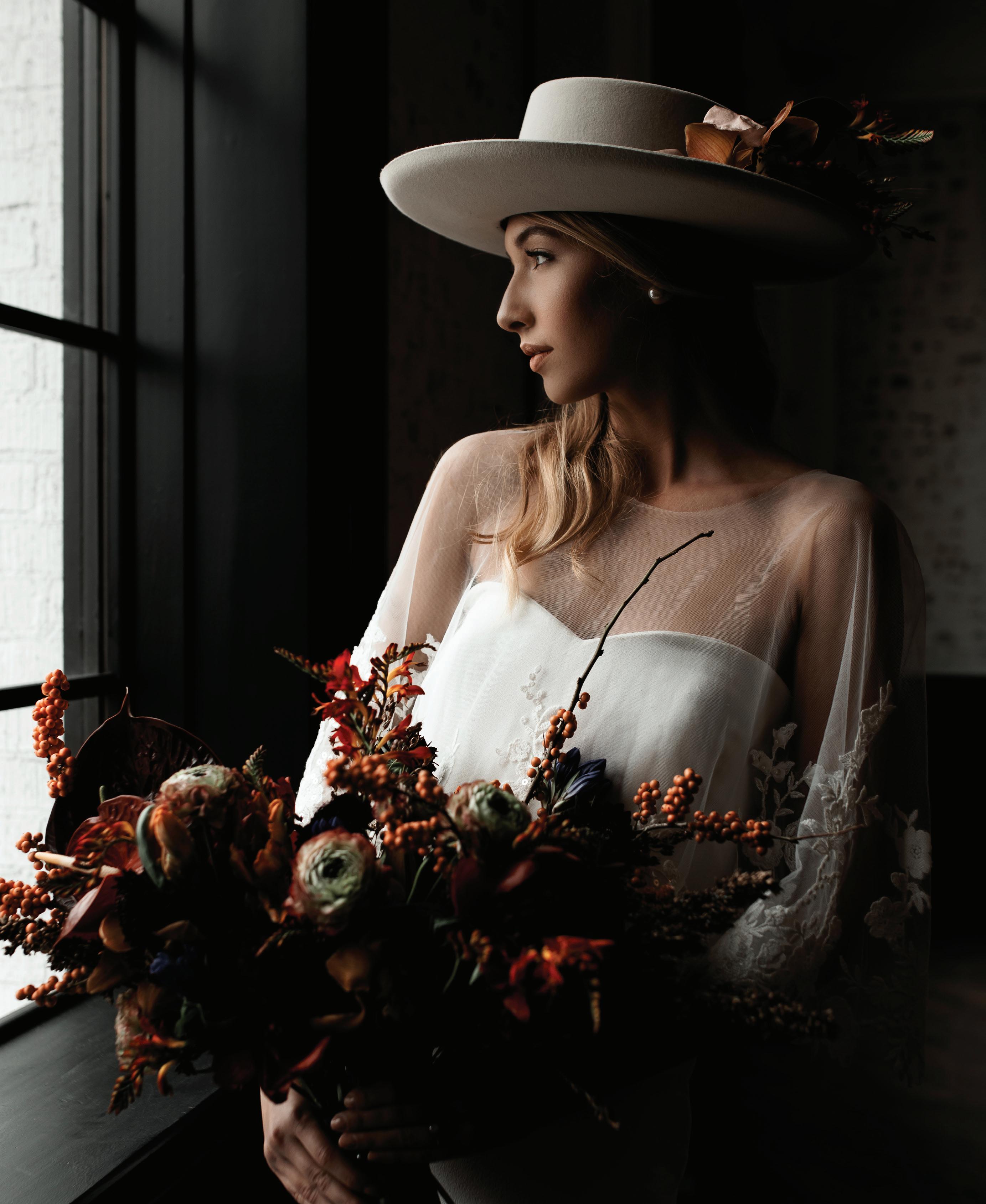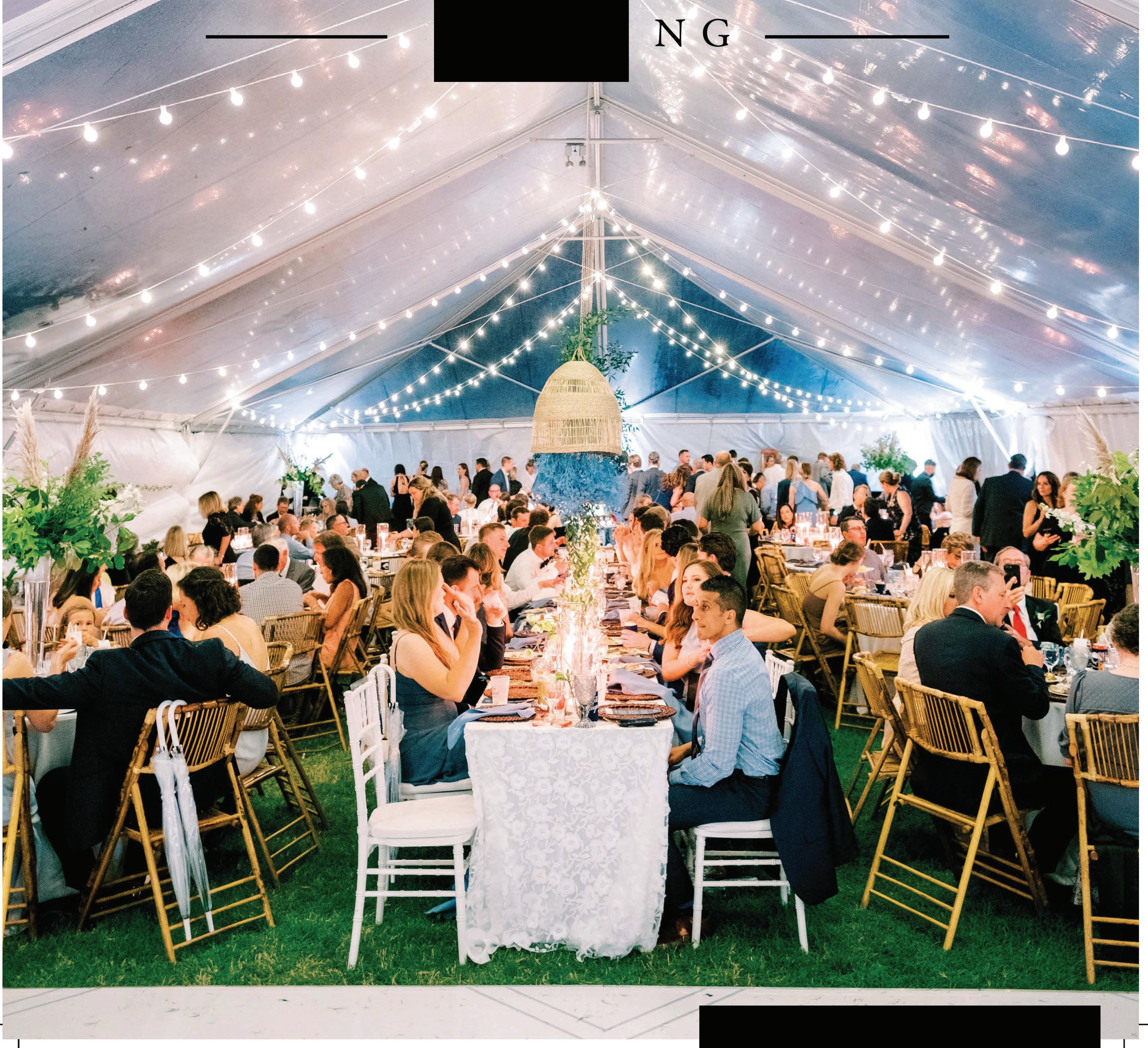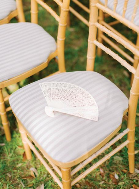 As for my own wedding, there are things I’m glad I did and some I wish I’d done differently. Being so young, we didn’t have the wherewithal to prop erly thank our guests. We’ve made it easy to put together thoughtful, locally sourced welcome bags, wedding party baskets, and shower host gifts without breaking the budget (pg. 40). I wish I’d known how to properly preserve our wedding cake (read our primer on page 92), because ours was too frostbitten to eat by our first anniversary. And now knowing what a whirlwind our recep tion would be, I wish I’d known to do a private last dance so I could take it all in (like the couples on pg. 87–88 did).