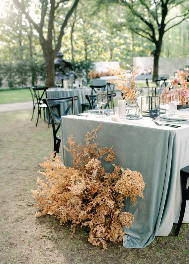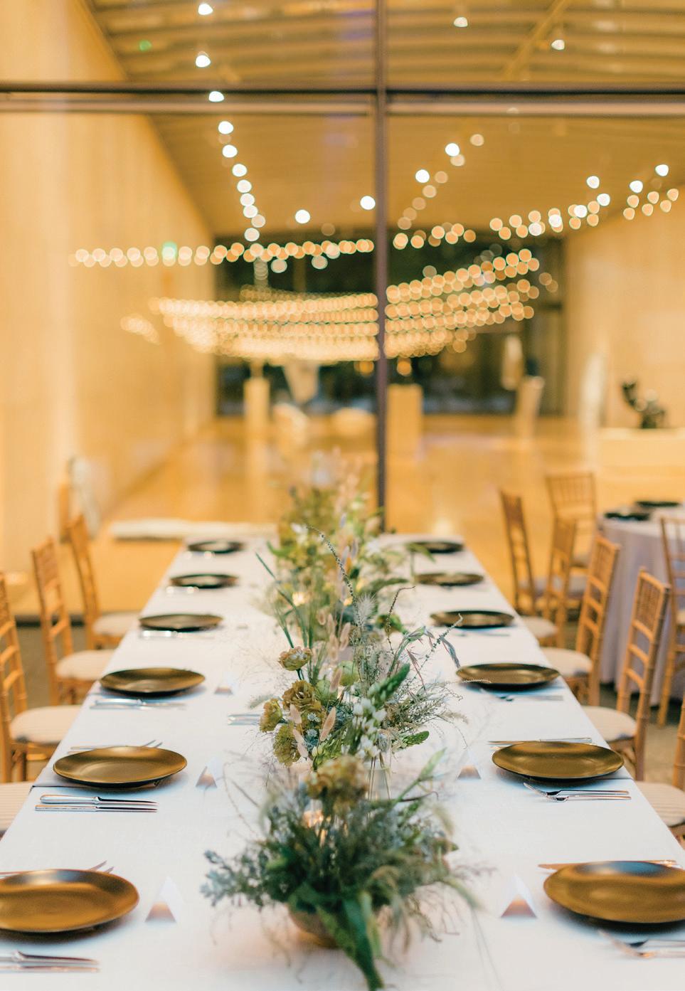 resources that will help you care for your physical and mental well-being throughout the wedding-planning process (pgs. 42–43). Looking for a way to incorportate some Texas flavor into your festivities? We explore the recent surge in country-western style in weddings on pages 49–54. And while destination weddings continue to be a favorite way for couples to celebrate, here’s a news flash if you’re considering one: You still need Dallas-based vendors to make your dreams a reality. We’ll help you see how (pgs. 88–89).