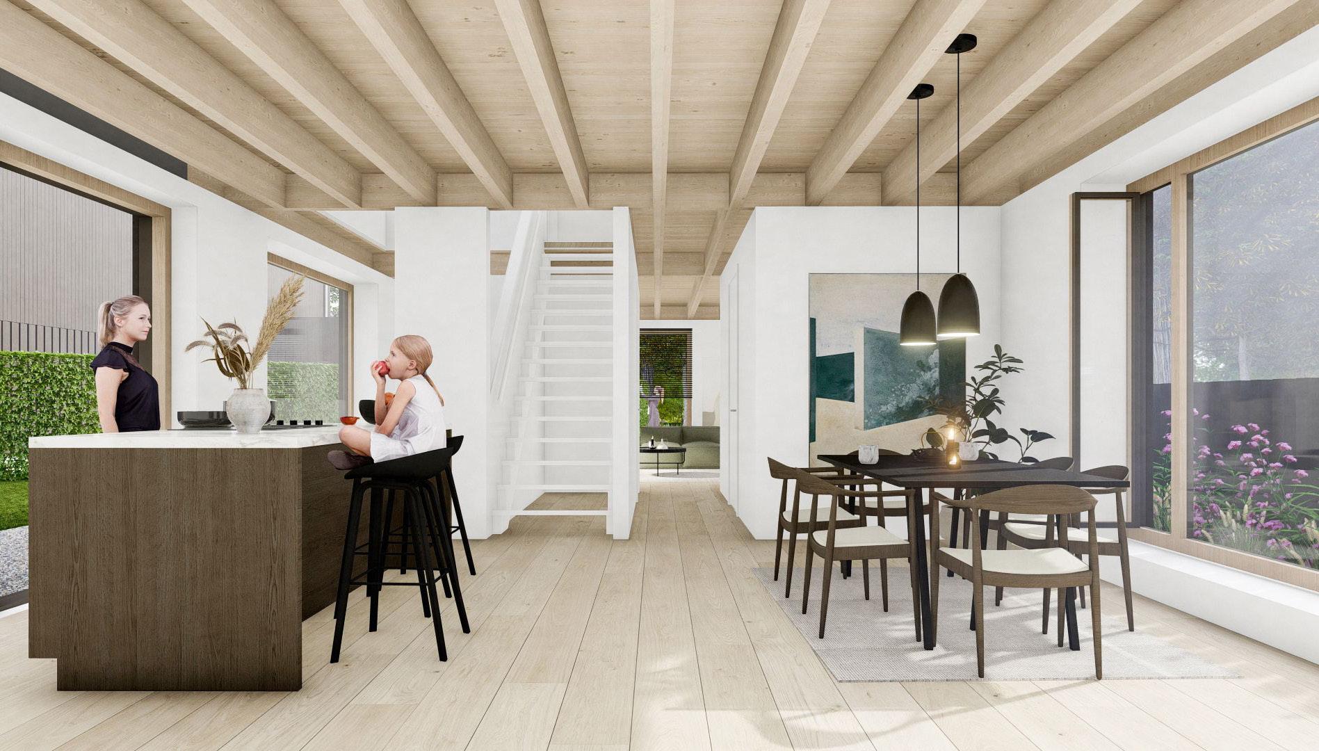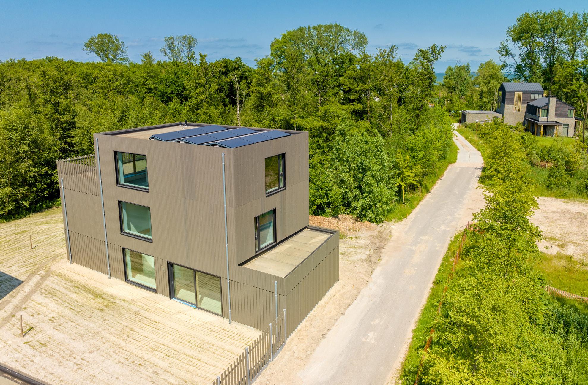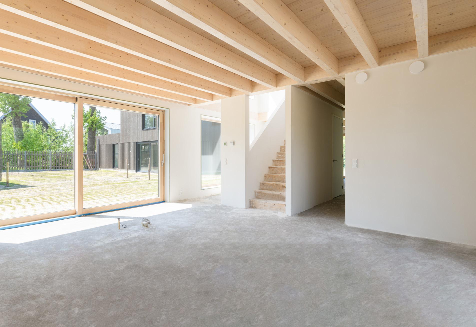 De villa is zeer goed geïsoleerd. Dat komt door het hout, door de dikke buitenwanden en het triple-glas. Daardoor hoef je minder energie op te wekken. Door de hoge isolatie-waardes blijft omgevingsgeluid buiten. Bovendien is de luchtdichtheid erg hoog, waardoor het overal in huis comfortabel is.