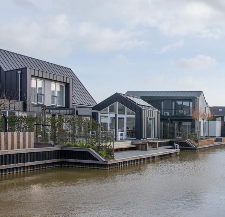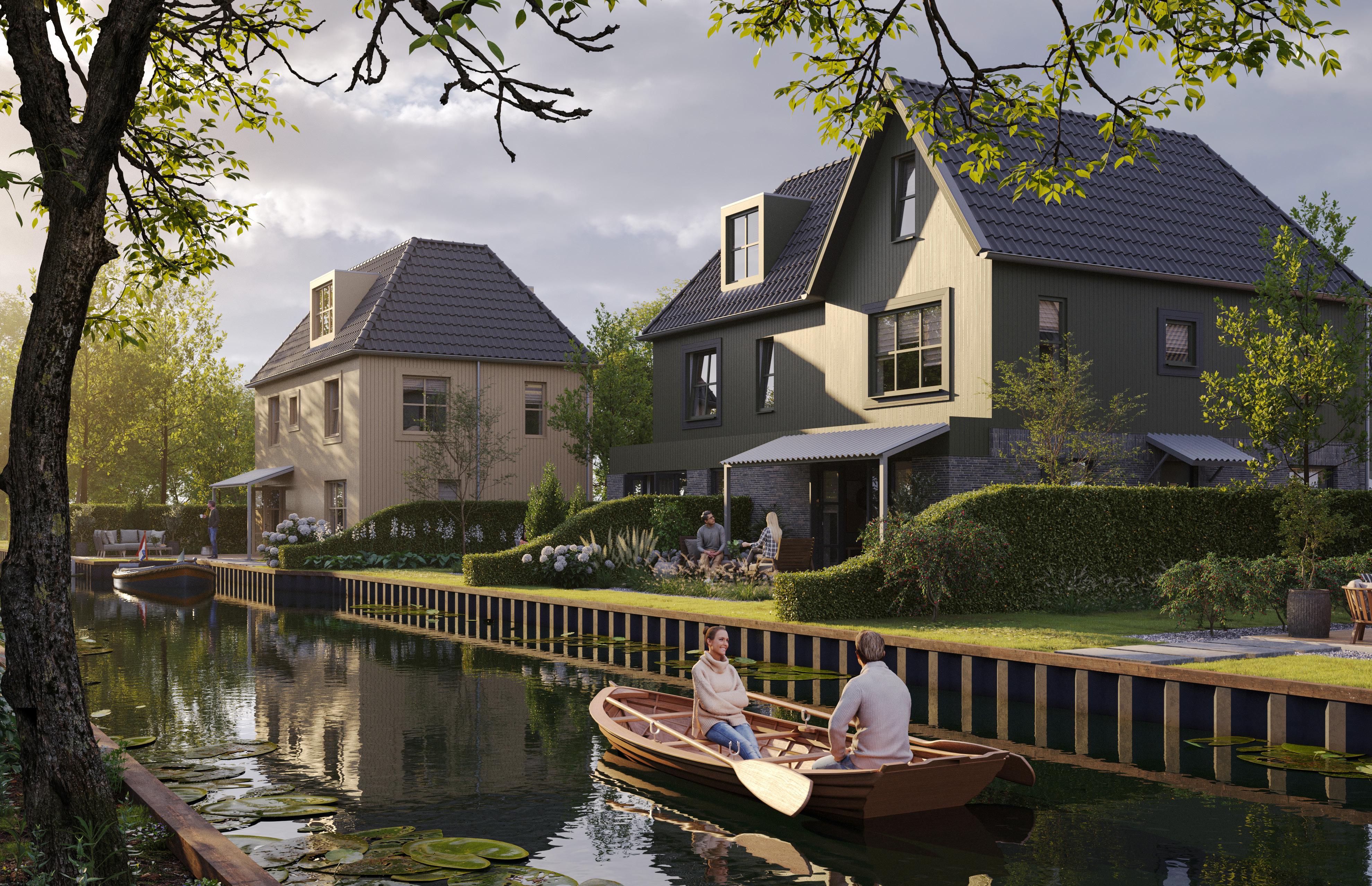 De hoogwaardige afwerking is een combinatie van alleen de allerbeste en waar mogelijk, duurzame materialen. Sobere architectuur ontworpen voor aan het water. De terughoudende kleurstelling, 2 kleuren hout, 2 kleuren kozijn en het gemêleerde gesorteerde baksteensortering valt weg tegen de bomen van het Kruitbos en het water.
