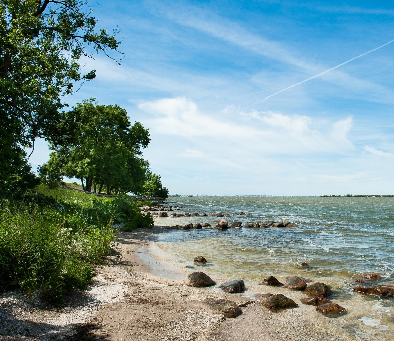 Via het bruggetje wandel je zo naar de IJmeerkust!