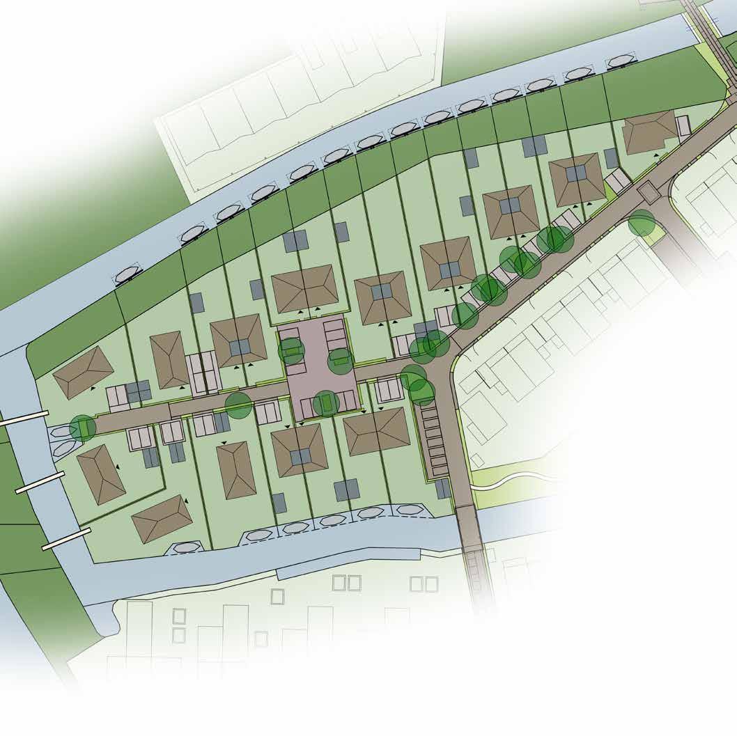• Eigen ligplaats. Bij de woningen met bouwnummer 1 t/m 8 is de ligplaats in de tuin (als insteekhaven) voorzien.