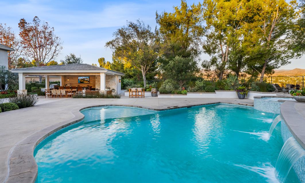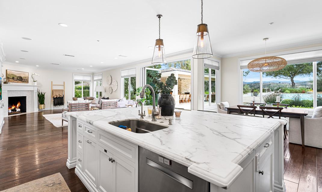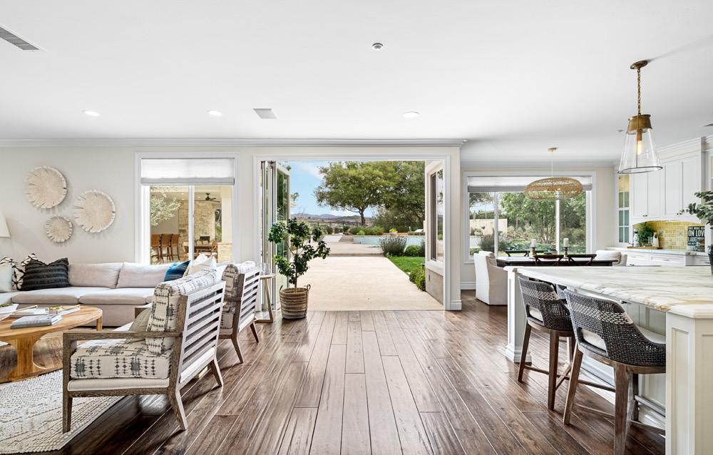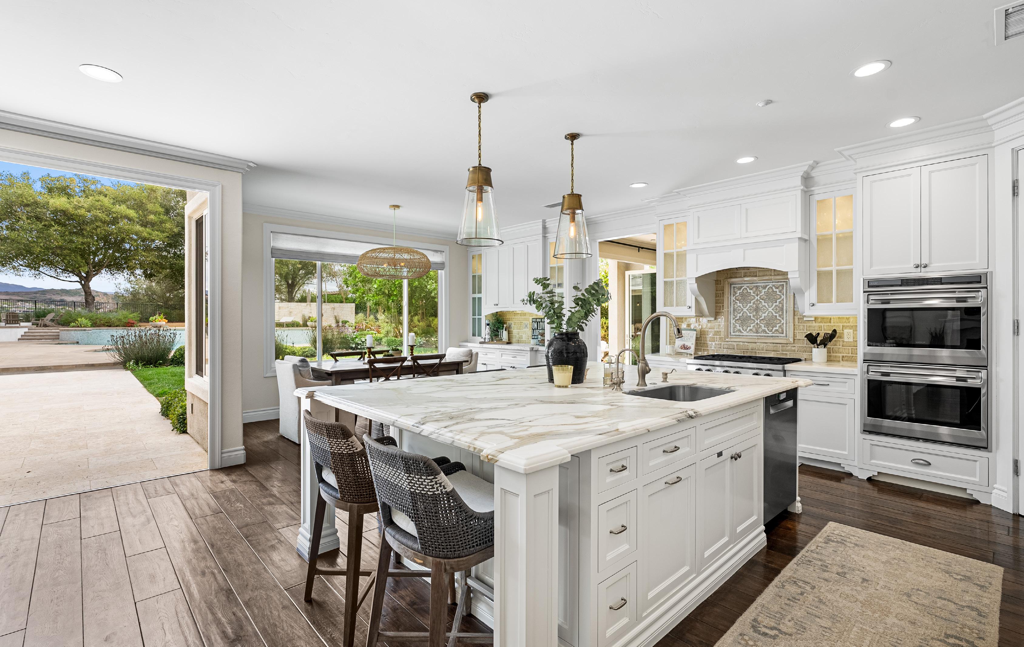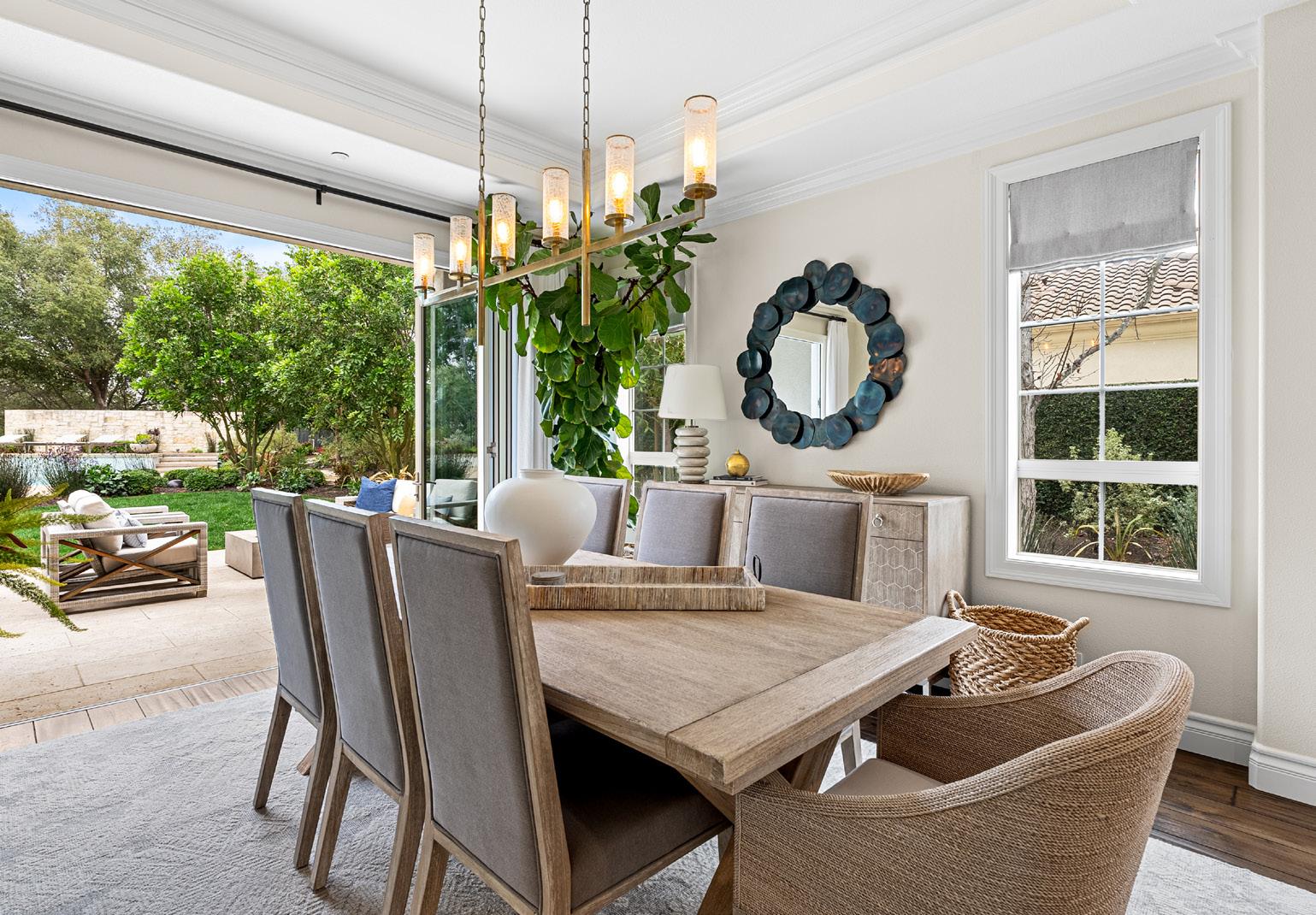 This custom residence, set on a 26,078-square-foot lot, combines sophistication and modern elegance with a layout designed for entertaining. A long paver driveway leads to a nearly 4,500-square-foot French-inspired home that seamlessly blends indoor-outdoor living. The grand two-story foyer and elegant formal spaces, including a living room with a fireplace and a dining room with La Cantina folding doors to the backyard, create a stunning first impression. The family room and chef’s kitchen flow together for casual gatherings, with folding doors opening to the outdoor living area. The kitchen features a large island, marble countertops, glass cabinetry, and premium appliances. Five spacious bedrooms and four-and-one-half baths include a luxurious main-level ensuite and a primary suite with a private balcony, fireplace, and spa-inspired bathroom. A bonus room upstairs offers additional space for entertainment. The backyard is a resort-style oasis, with a pool, spa, heated casita with a stone fireplace, bar seating, and a built-in grill. Smart-home technology controls lighting, audio, and the pool. A four-car garage with fitness space and storage completes the home. Enjoy top amenities like golf, trails, and tennis courts nearby in Coto de Caza.