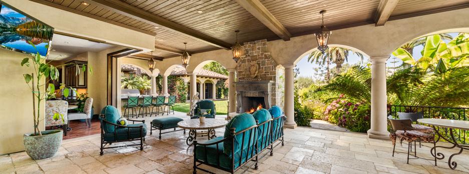 • Covered loggia off Great room with fireplace, outdoor kitchen, disappearing doors