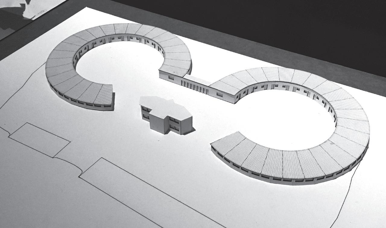 En primer lugar, tenemos el caso de Gao Lacho Drom (Pueblo del Buen Camino, en romaní) construido a las afueras de Vitoria-Gasteiz, en 1969, y proyectado por el arquitecto Enrique Marimón (fig. 4). Se trata de dos grandes construcciones circulares de viviendas que conforman un conjunto autónomo. La fotografía aérea (fig. 5) permite apreciar la condición extraurbana de este tipo de proyectos: conectados con la ciudad, pero lejos de ella, instalados en medio de un campo sin cualidades. Esta imagen sugiere una implantación territorial similar a la de los campos de concentración y resulta especialmente efectiva para pensar el espacio de excepción que inauguran este tipo de lugares.