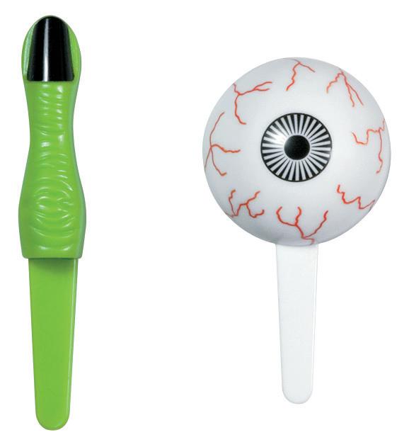 Shown: #28198 Eerie-Sistible Skewers, #28926 Vampire Fangs Cupcake Layon, and #5305 Clear Vanilla Piping Gel mixed with #22497 Red Red Premium