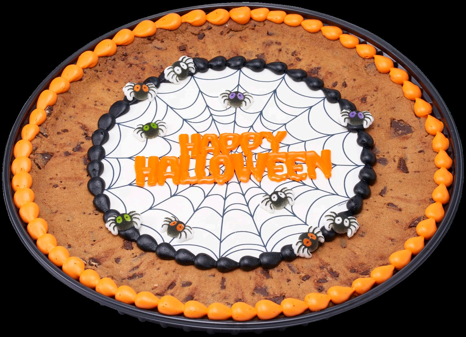Shown on 12” message cookie: #21372 Halloween Drip Script Layon, #49240 Itsy Bitsy Spider Assortment Dec-Ons®, and #28081 Spider Web PhotoCake® Edible Image®