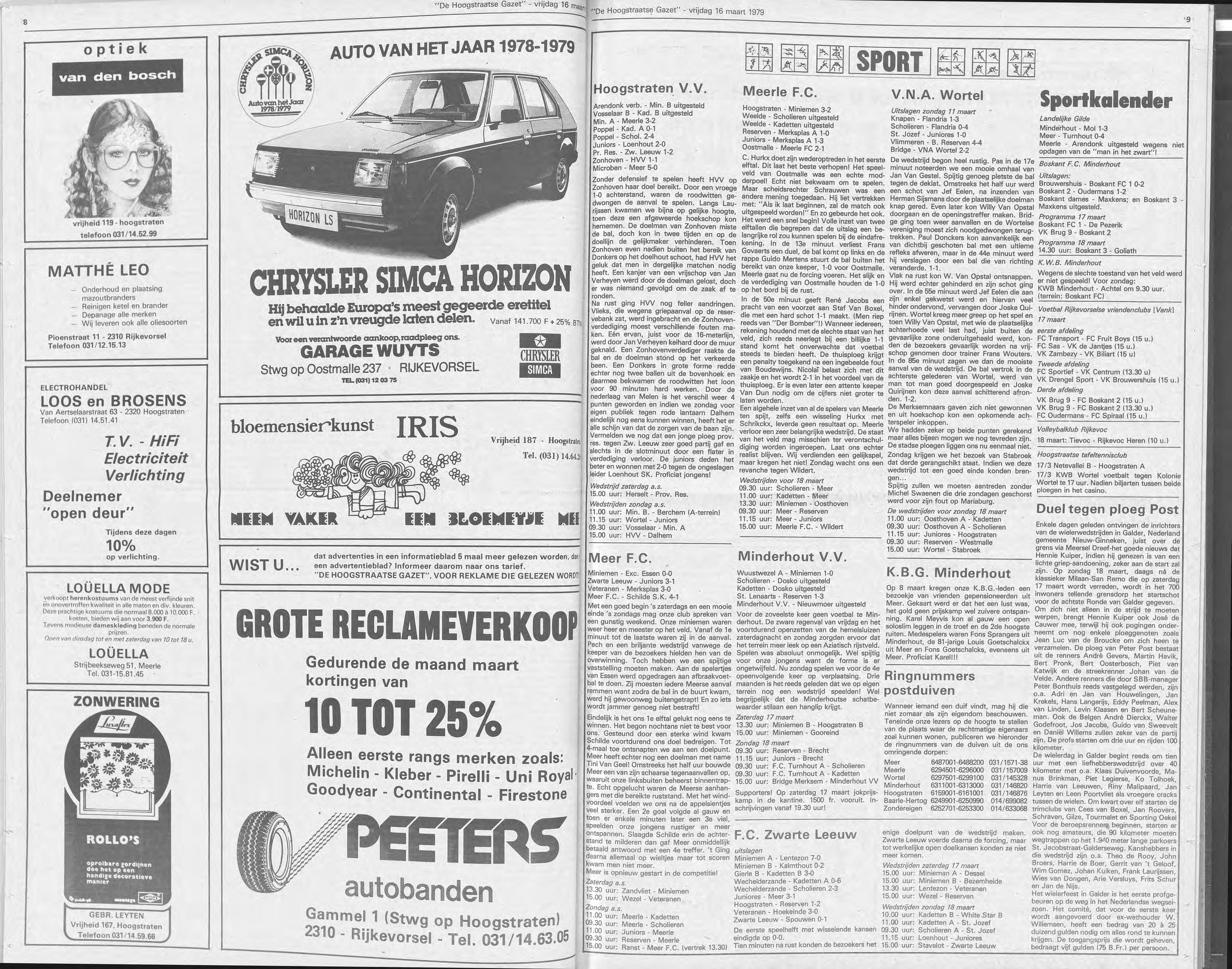 "De Hoogstraatse Gazet" - vrijdag 30 maan 12 optiek van den bosch vrijhe,id 119 - hoogstraten telefoon 031/14.52.99 De specialist voo. fietsen b.omfietsen en IPasmllieps new HAKKEN - PLOEGEN - AANAARDEN - EGGEN 386 ALLES DOEN!Met: motorfrees 386 Motor B & S - 5 PK. 4 versnellingen vooruit - 1 versnelling achteruit. Geleverd met 4 rotatieve frezen. Werkbreedte 54 Selektie de versnellingen door hefboom. Transportwielen 20.300,- F BTW incl. Ploeguitrusting met Landbouwwielen Brabantsewentelploeg In een handomdraai kan U de MTD motorlrees om,bOuwen tot een ploeg, dank zij zijn twee'landbouwwlelen die aan de grond kleven. Uw MTD kan even�.ens - onvermoeid - aanaarden, eggen, enz da.�k ZIJ oordeelkundig gekozen en bovendien gemakkelijk te monteren toebenoren. met ploeg compleet 32.150,- F_ A�ßA KERKSTRAAT ri' MERKSPLAS' (014) 633639 OPEN: van.9 tot 20 uur, zondag 10 tot 12.30 uur.; GESLOTEN: maandag, 31 maarllol 5 april Bewonder uw kommunie. foto's tijdens het kommuniediner • POLAROID 1CCC Niets af te stellen, Een knop indrukken, De prachtige SX-70 kleurenfoto ontwikkelt zich voor uw ogen. - 10% op alle hemden SLECHTS 1500,- F. 3 jaar waarborg DEGREEF DORP39. 2310 RIJKEVORSEL TEL.: 031/1462&J EERSTE NUMMER VRIJDAG PRIJS Proyinciaal Sinl.Jozef.Riikeyorsel.: 21 Voor geheugenopfrissertje. lijke op terrein beplanten de gegeven. terrein king Alzo keuze terreinen sel. actie provincie steente provinciaal ondertussen 'Gazet Vooraf terrein van heidegrond. is, overwegend Gevolg: uit struikheide, een het oppervlakte, vennen lijk dopheide _--_;_--...;;.......;.--------------------- � dan aanplanting dergelijk Op aangeplante groei -eik Woningen De Meerse op tewat d.e sindsdien elk dorpen Om interessante kontakt nen ambt In leerde paey "Week v.an de.man" in Uw boeliek Keuze uit honder.den sportieve, modieuse modellen.