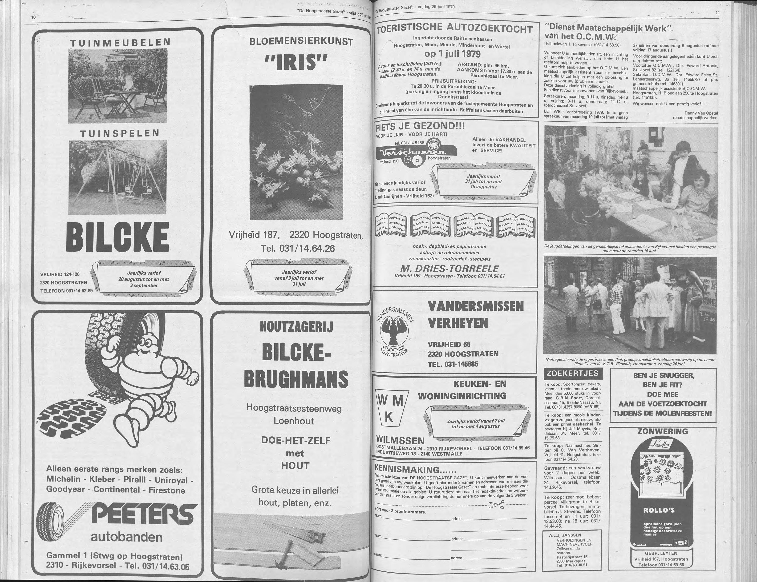 Î"-Hoogst�aten, Meer, Meerle, Minderhou� en W6rtel Helhoekweg 1, Rijkevorsel (031/14.68.90) 27 juli en van donderdag 9 aug�stus totsmet" 1 - vrij,dag 17 augustus!! / Op JU'I.- 1979 Wannee.r U in moeilijkheden zit, een inlichting \ €If bemiddeling wenst... dan hebt U het Voor dringende aangelegenhedén kunt U zich rechtom hulq te vragen. d� richten tot; ,...: