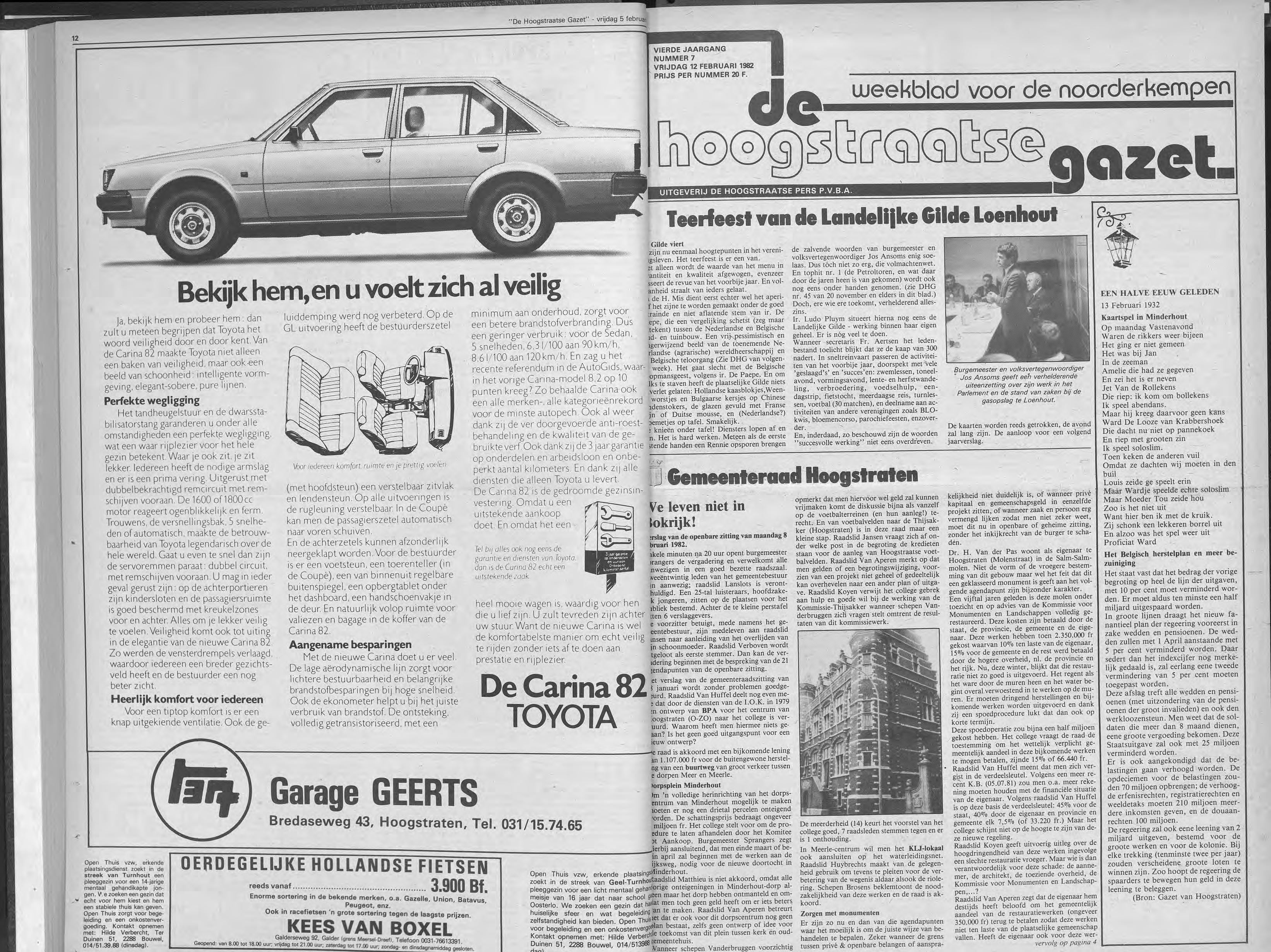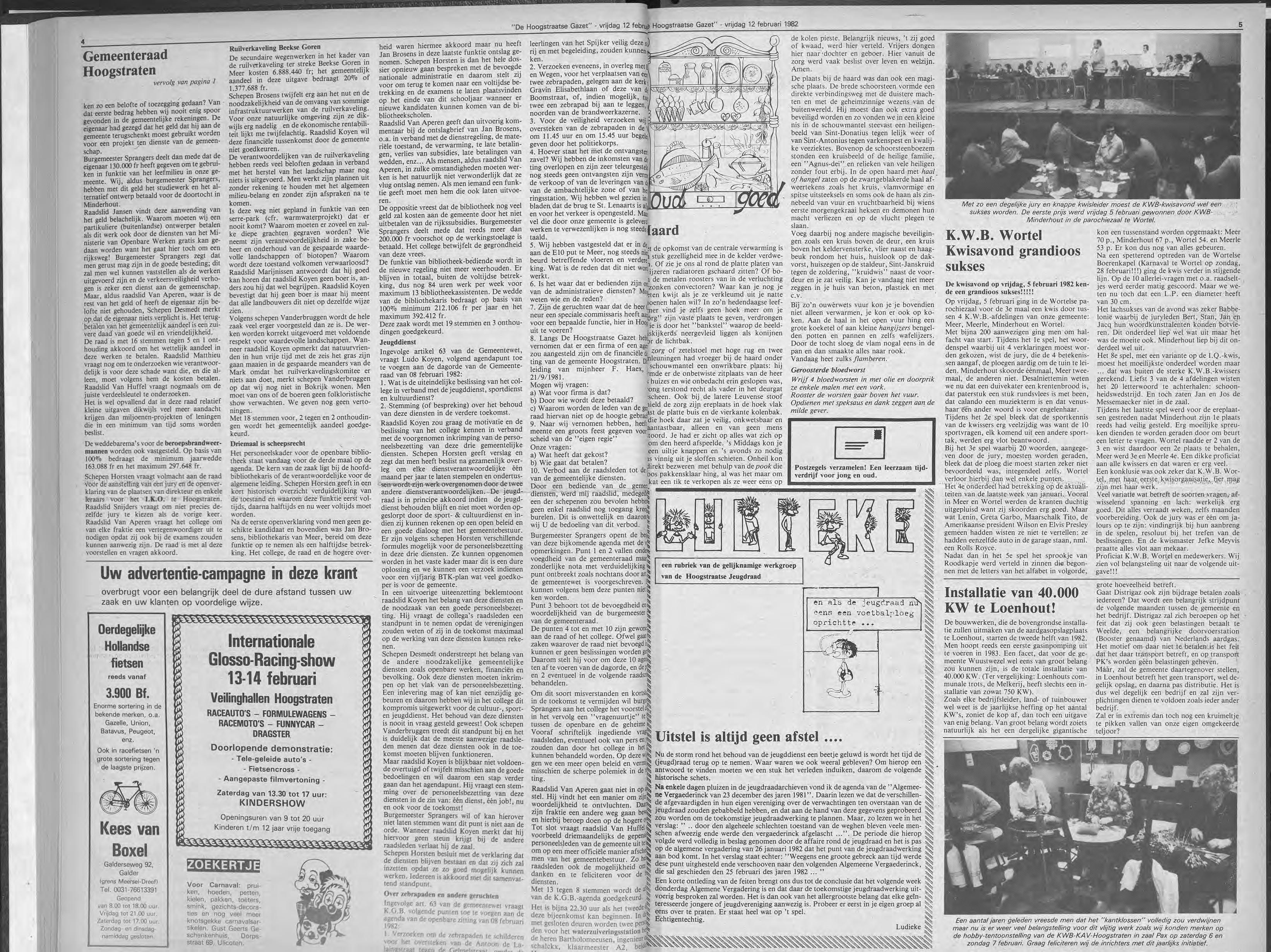 VIERDE JAARGANG NUMMER 6 VRIJDAG 5 FEBRUARI 1982 PRIJS PER NUMMER 20 F de weekblad voor de noorderkempen UITGEVERIJ DE HOOGSTRAATSE PERS P.V.B.A.