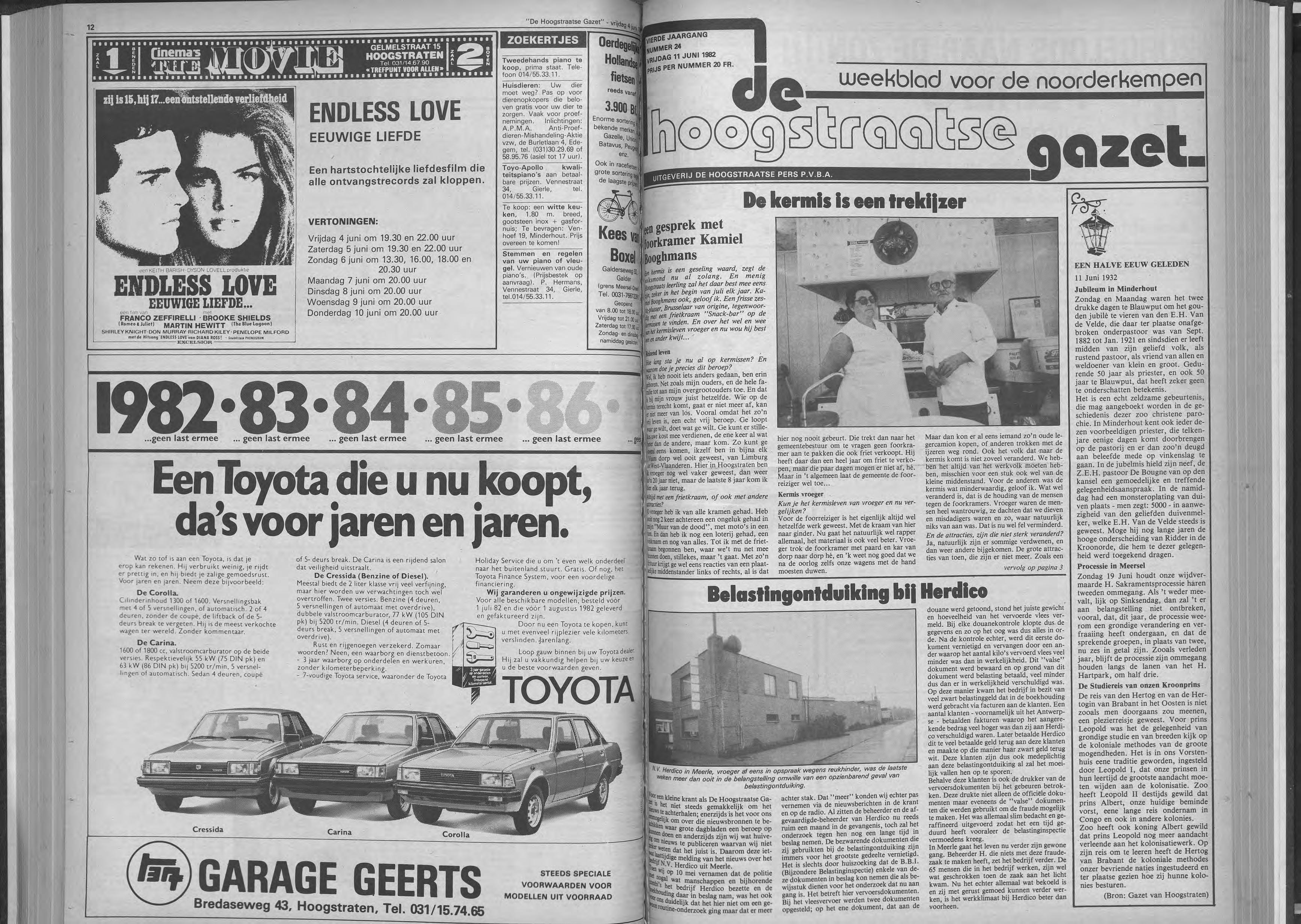 Van 11 juni tot 31 [uli '82 bieden wij u 3 jaar gratis onderhoud (100.000 km maximum) aan bij aankoop van een Carina, Tercel Corolla of Cressida.