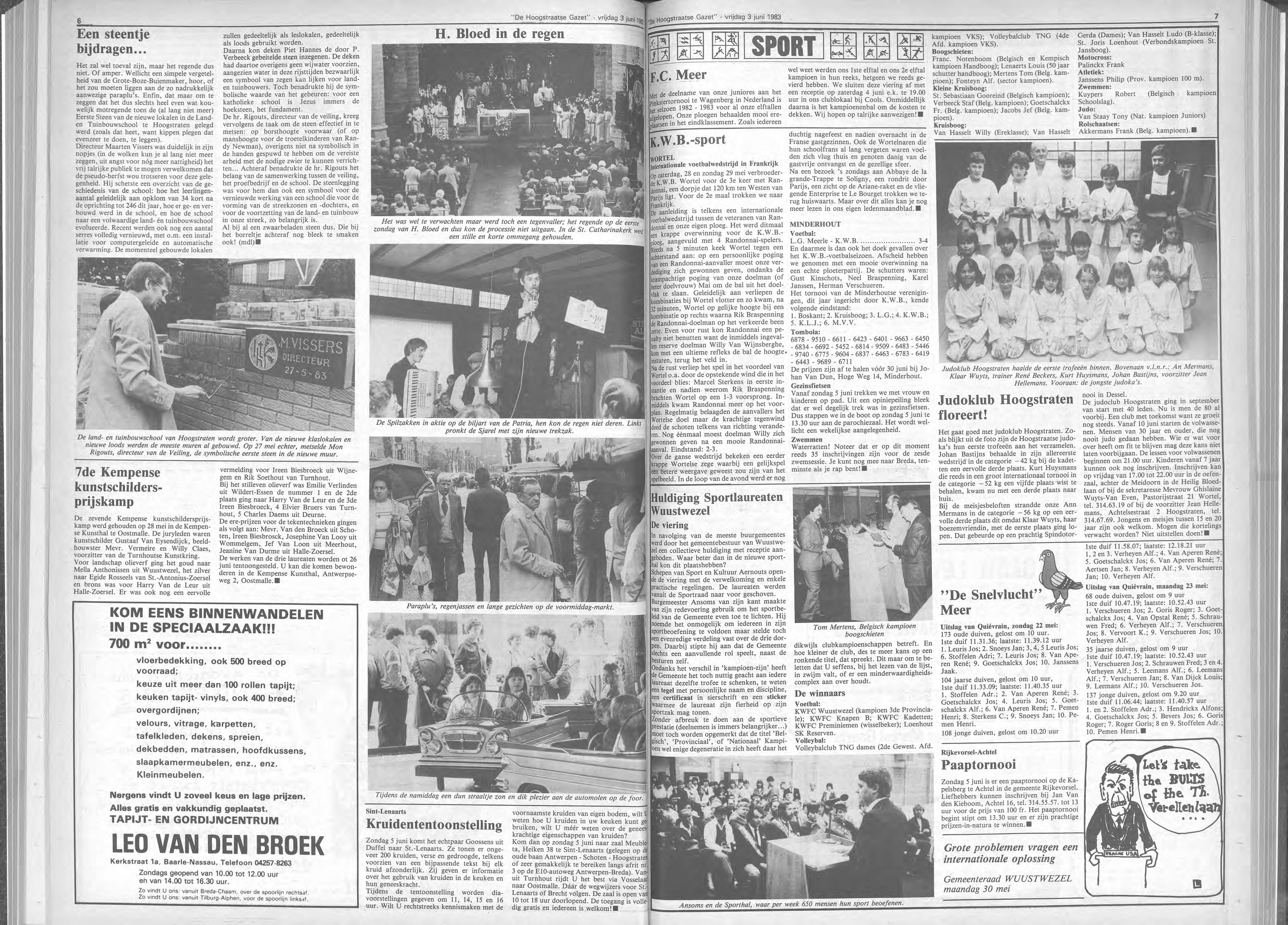 Met de deelname van onze juniores aan het Pinkstertornooi te Wagenberg in Nederland is het seizoen 1982 - 1983 voor al onze elftallen fgelopen. Onze ploegen behaalden mooi ere�laatsen in het eindklassement. Zoals iedereen duchtig nagefeest en nadien overnacht in de Franse gastgezinnen. Ook de WorteInaren die hun schoolfrans al lang vergeten waren voelden zich vlug thuis en genoten danig van de gastvrije ontvangst en de gezellige sfeer. Na een bezoek 's zondags aan Abbaye de la grande-Trappe te Soligny, een rondrit door Parijs, een zicht op de Ariane-raket en de vliegende Enterprise te Le Bourget trokken we terug huiswaarts. Maàr over dit alles kan je nog meer lezen in ons eigen ledenmaandblad.•