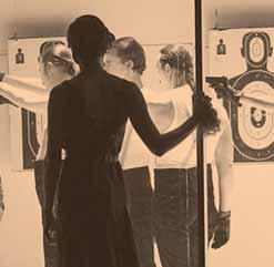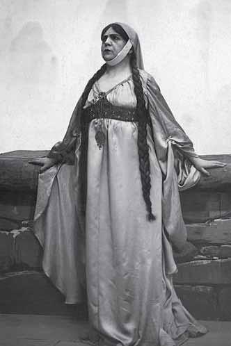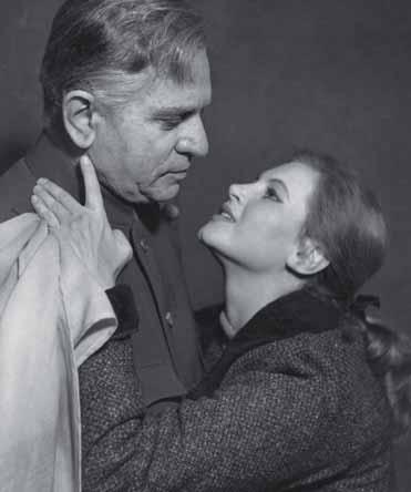 (Herečka se mazlí se svatebními šaty. Jezdí si s nimi po ňadrech a vzdychá. Režisér přechází do vřeštivého smíchu.