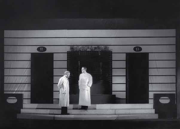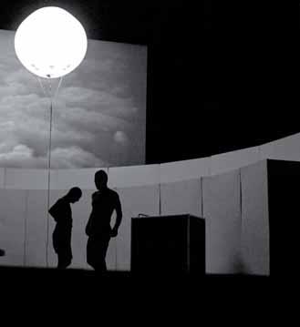 Zkouší se úvod. Za plátnem Herec 4 skáče na trampolíně, sem tam udělá salto. Mezitím dělníci ND chystají úvodní scénu. Přinášejí bedny a rovnají je do řady. Přicházejí dvě dělnice a nesou svatební šaty. Jedna je dává na prostřední bedýnku. Spokojeně si prohlíží své dílo a odchází. Za ní jde druhá dělnice, šaty obrací, rovněž spokojeně se podívá a také odchází. Boj dvou