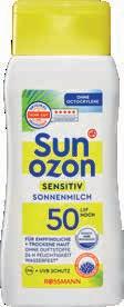 5.95 Sunozon Sonnenspray transparent LSF 30 200 ml 6.95 Sunozon Sonnenspray Kids LSF 50 250 ml 19 5.95 Sunozon Sonnenbalsam Sport LSF 50+ 50 ml 3.95 Sunozon Aprèslotion Melanin-Booster 200 ml 5.95 Sunozon Sonnenspray transparent LSF 50 200 ml 6.95 Sunozon Sonnenmilch Sensitiv LSF 50 200 ml 20 %
