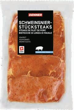 Denner Schweinsnierstücksteaks gewürzt, 4 x ca. 150 g, per 100 g