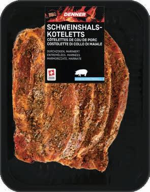 Denner BBQ Schweinshalskoteletts durchzogen, mariniert, 4 x ca. 160 g, per kg