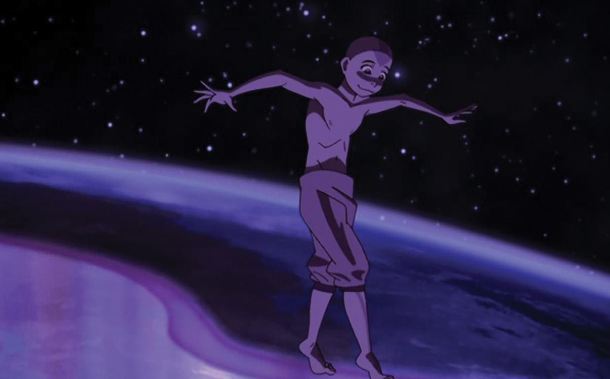 Aang attempts to master cosmic energy.