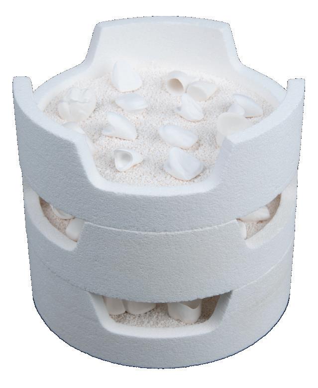 A rough guide is 1 cm model height corresponds to 20-25 % loss of thickness. It is useful to embed the models for thermoforming as far into the high grade steel granules so that only the area that has to be thermoformed plus 3-5 mm is visible. The granules allow for a fast adaptation of the thermoforming materials and is a very simple way to adjust the model height and inclination.