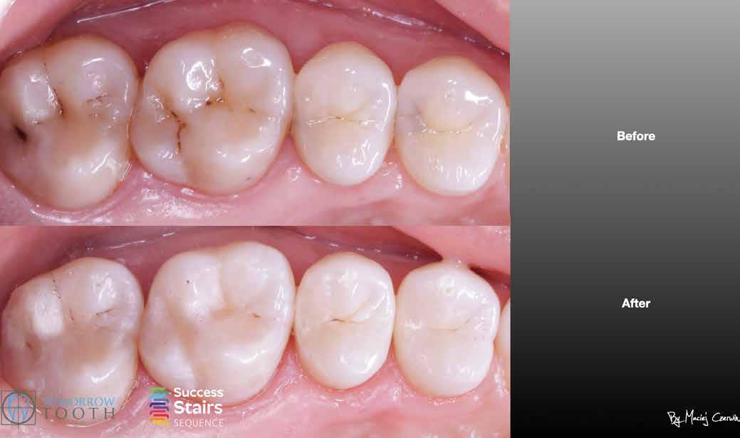 • Rendszerszerű előkészítési protokollok (izoláció, speciális homokfúvás) szuvas és nem szuvas restaurációk esetében