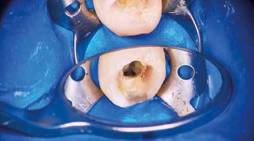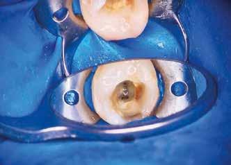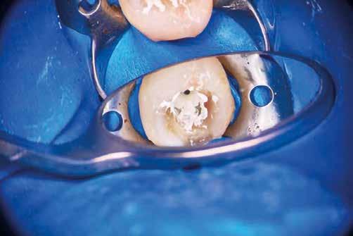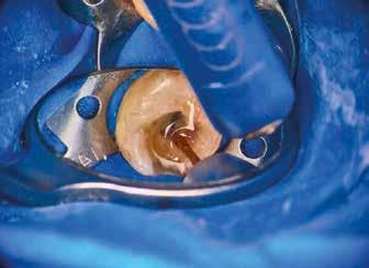 egyszerű obturációs technika, az anyag viszkozitási tulajdonságai és a pulpakamra viszonylag egyszerű tisztíthatósága a kezelésünk prognózisának veszélyeztetése nélkül teszi lehetővé az endodonciai beavatkozások lehető legkonzervatívabb módon történő kivitelezését. A bemutatott esetek ellátása során az Aurum Blue rendszert (Meta Biomed) használtuk a gyökércsatornák megmunkálására, míg a gyökértömés elkészítése során hideg hidraulikus kondenzációs technikát alkalmaztunk a kalcium-szilikát alapú CeraSeal (Meta Biomed) sealer felhasználásával (8. ábra).