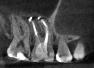 Egy 35 éves férfi beteg a középső metszőfogait érintő érzékenység miatt kereste fel a rendelésünket. A klinikai vizsgálat során akut periapicalis abscessust észleltünk. A radiológiai vizsgálat eredményeinek kiértékelés során a jobb felső nagymetszőfog (11) gyökerét érintő reszorptív elváltozást láttunk. A beteg egy néhány évvel korábban bekövetkezett, a kérdéses régiót érintő traumás sérülésről számolt be. A diagnózisunk pulpa nekrózis és akut periapicalis abscessus volt.