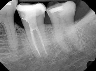 A gyökérkezelés megkezdését követően az első ülésben nem lehetett a gyökércsatorna teljes munkahosszán végighaladni.