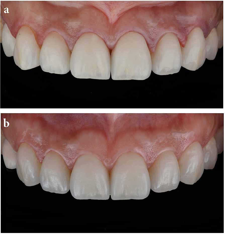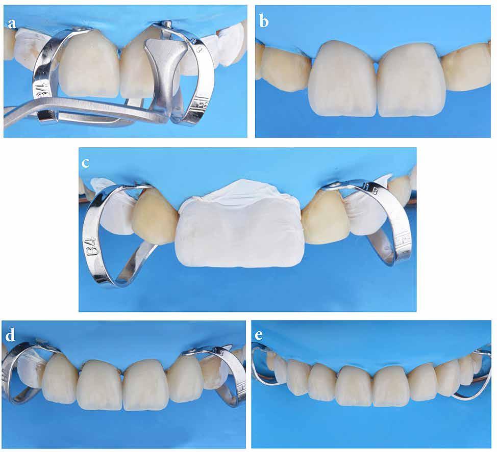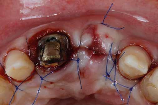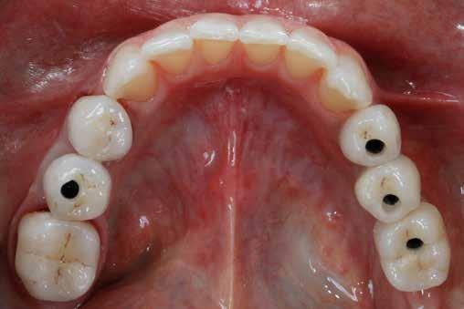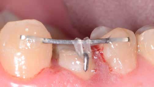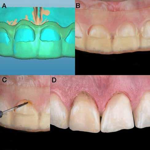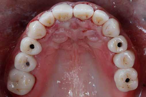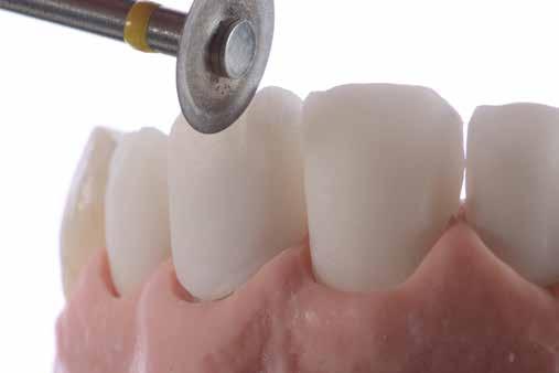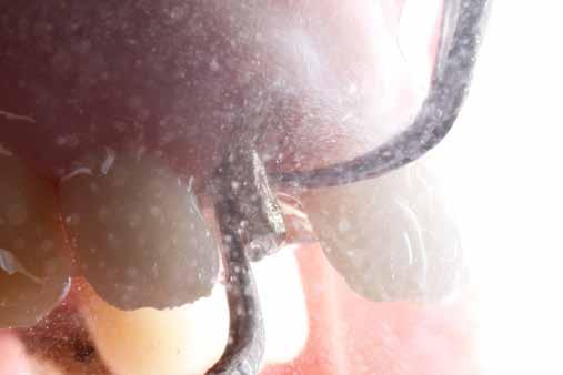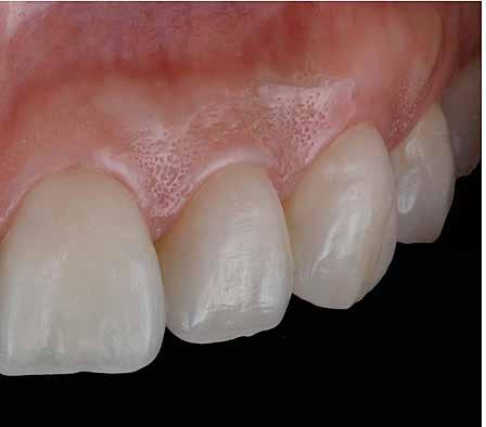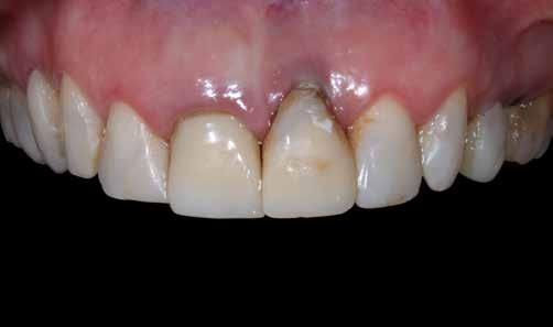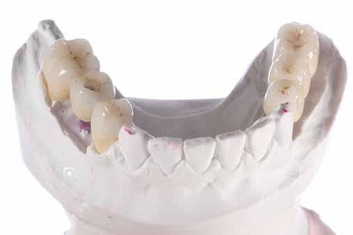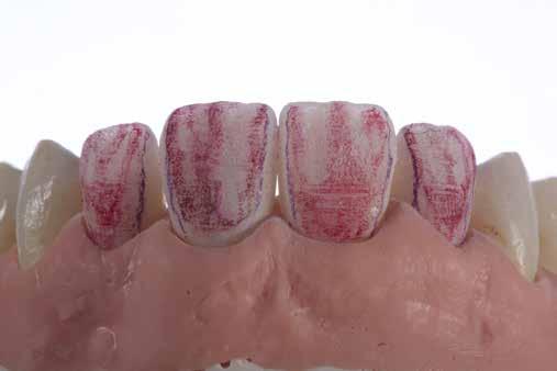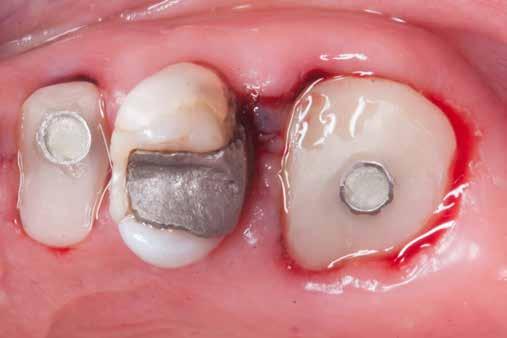 érzéstelenítést követően átvágtuk és leemeltük. A fogcsonkokról ismételt preparálás után lenyomatot vettünk. Az oldalsó metszőfogakon tűzálló csonkokkal mestermintát készítettünk. A minta szkennelése után megterveztük a nem nemesfém koronavázakat a 11-es és 21-es fogakhoz, amiket Ceramill Motion 2 marókészülékkel Ceramill Sintron-ból csiszoltunk ki (mindkettő gyártója Amann Girrbach, Pforzheim, Németország).