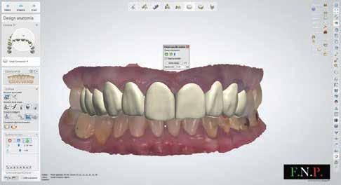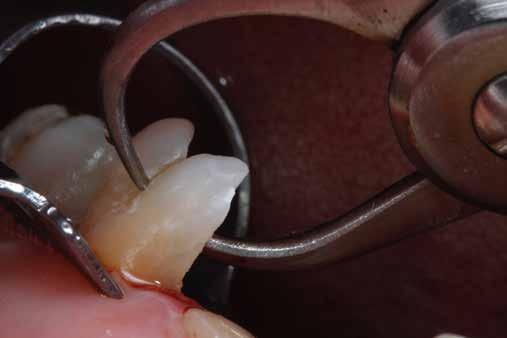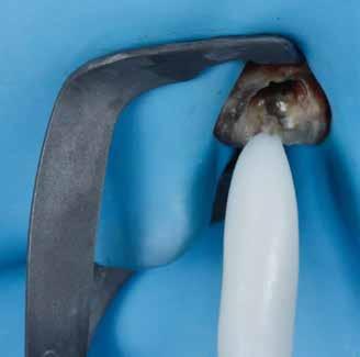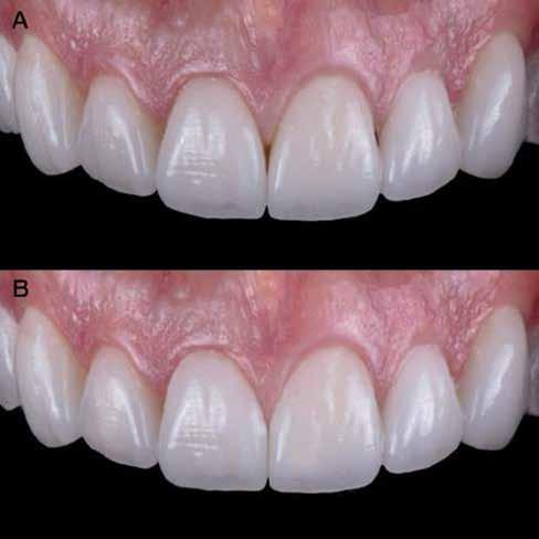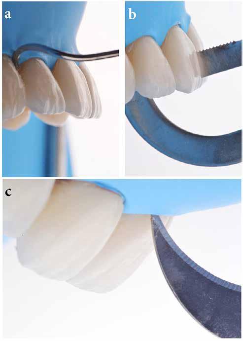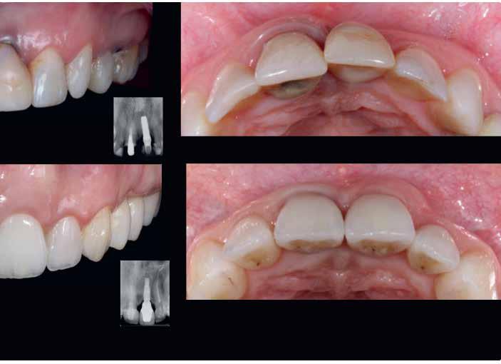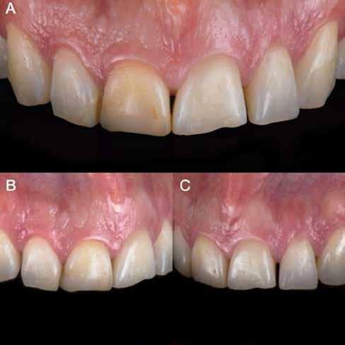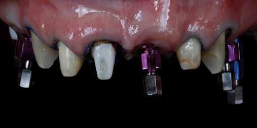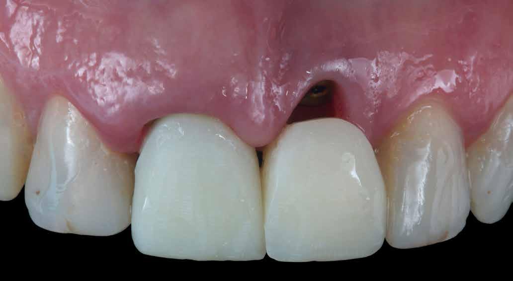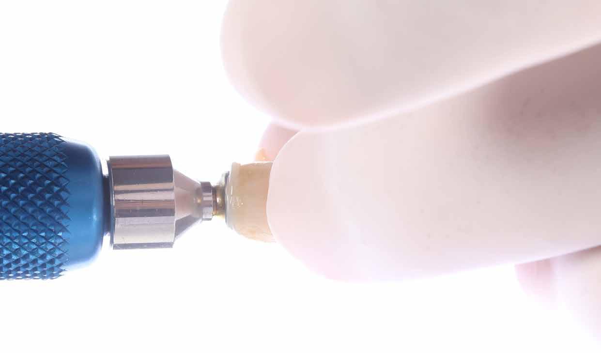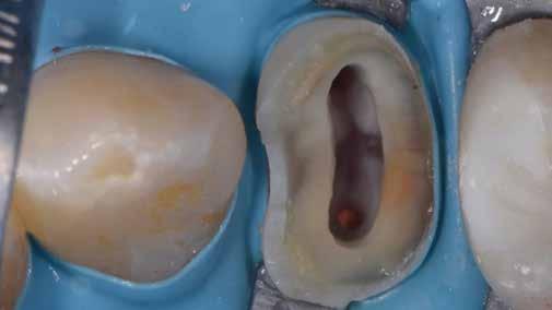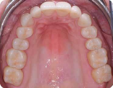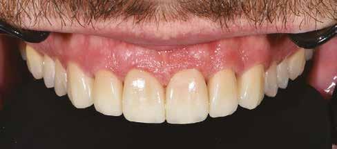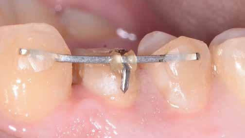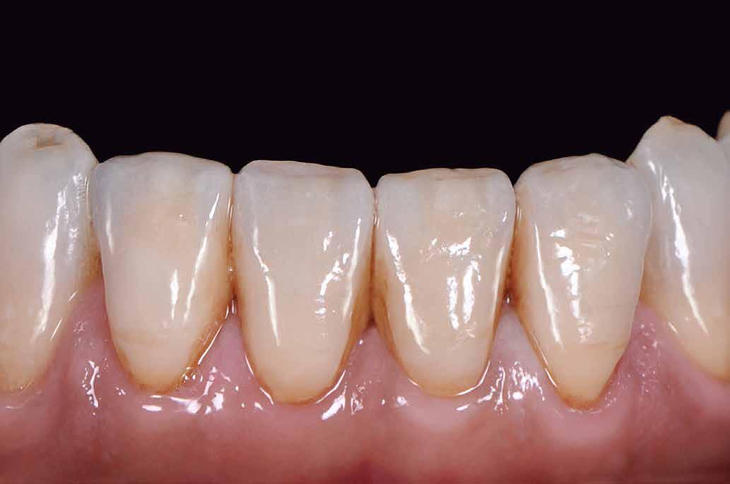 érzéstelenítést követően átvágtuk és leemeltük. A fogcsonkokról ismételt preparálás után lenyomatot vettünk. Az oldalsó metszőfogakon tűzálló csonkokkal mestermintát készítettünk. A minta szkennelése után megterveztük a nem nemesfém koronavázakat a 11-es és 21-es fogakhoz, amiket Ceramill Motion 2 marókészülékkel Ceramill Sintron-ból csiszoltunk ki (mindkettő gyártója Amann Girrbach, Pforzheim, Németország).