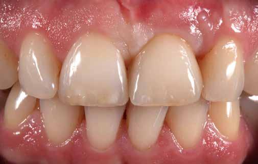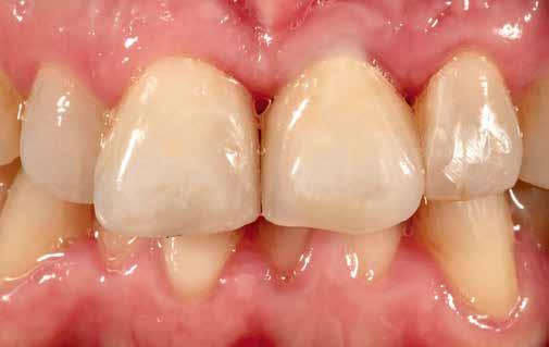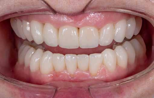 megformált gingivaprofil figyelhető meg. A rendelő és labor közös megbeszélés során cirkonoxid korona készítését határozta el titánbázisra (4–7. képek).