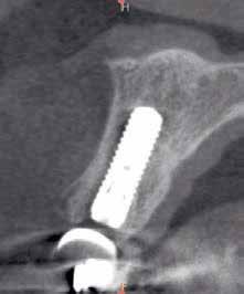 Az utolsó sebészi lépés előtt (implantátum-felszabadítás) a CBCT megmutatta az implantátum pontos pozícióját és