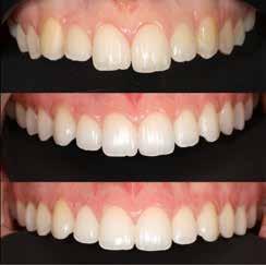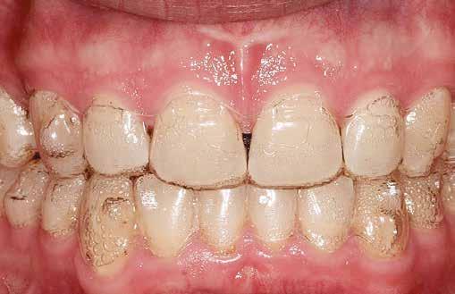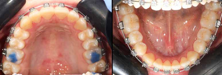 A Transfer Bite rendszert összességében jobbnak ítéltük meg, mivel biztosítja a bracketek ragasztási felületére való közvetlen rálátást a kezelést végző orvos számára, akinek így lehetősége van a kompozitfelesleg eltávolítására (5. ábra). Ezen túl a Transfer Bite a thermoplasztikus módszerrel készült sablonokhoz képest nagyobb stabilitással rendelkezik, és pontosabban ül a fogíven. Ennek köszönhetően még pontosabbak lehetünk a ragasztás során, valamint ha az egyik bracket leesik, akkor annak az eredeti pozícióba történő visszaragasztása is jelentősen egyszerűbb.