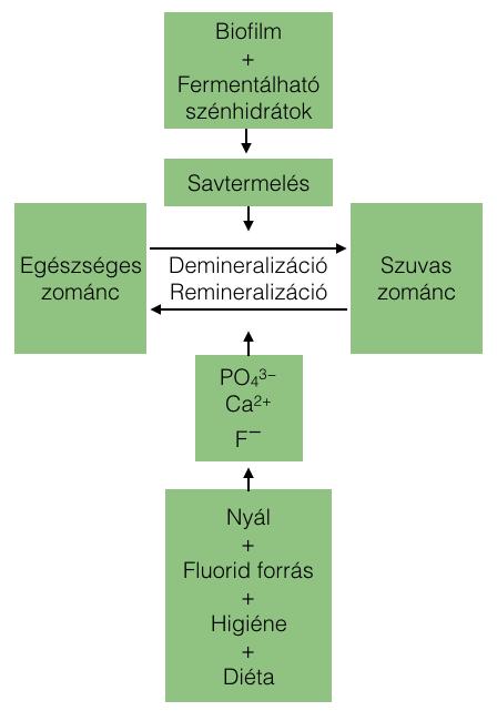 őrzése és javítása. Egészségügyi szervezett prevenciós programok az óvodában és az iskolában, csoportos gyermekfogászati ellátás keretén belül történhetnek. A paradigmaváltás sok új ismeretet jelent, mind a terápia, mind a prevenció szintjén. A prevenció jellege is más megvilágításba került. A megelőzés szempontjából előtérbe került a remineralizációt serkentő módszerek és anyagok használata. A modern, preventív megközelítés szerint a szuvasodás folyamata megállítható non-invazív és minimal invazív eljárásokkal (már a Black elveket sem kell követni), amennyiben a cariest létrehozó tényezőket eliminálni tudjuk. Népegészségügyi szempontból rendkívül fontos ezeknek az eljárásoknak az előtérbe helyezése, melyek hozzásegítenek a gyermekek szájüregi egészségi állapota javító és megelőző prevenciós programjainak a kidolgozásához, továbbá a megvalósításához [4].
