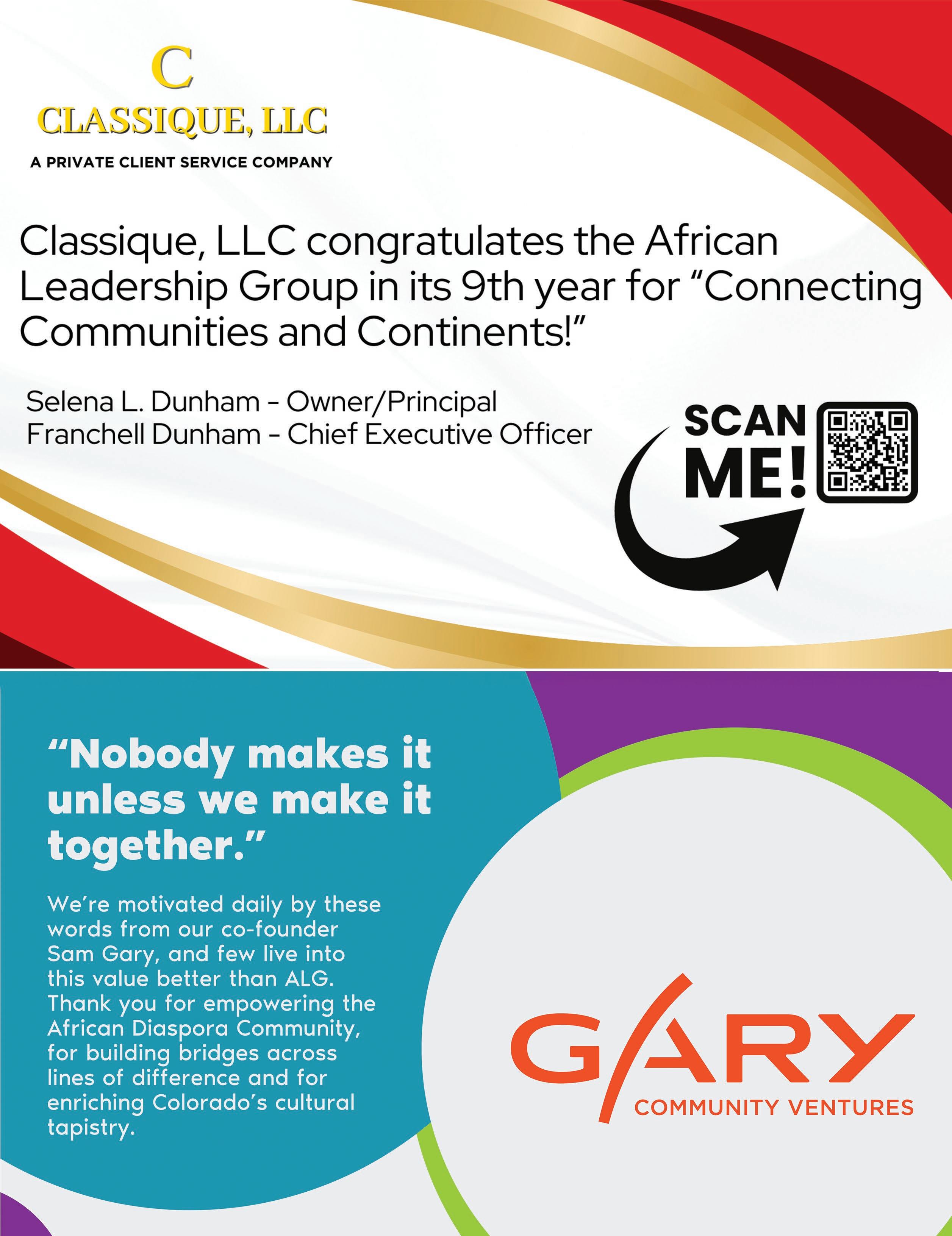 On behalf of the African Leadership Group, we thank you for your generous support. Your sponsorship, donations, and funding are greatly appreciated and important to our success. With your generosity, our programs and services offered to the community continue to grow. .