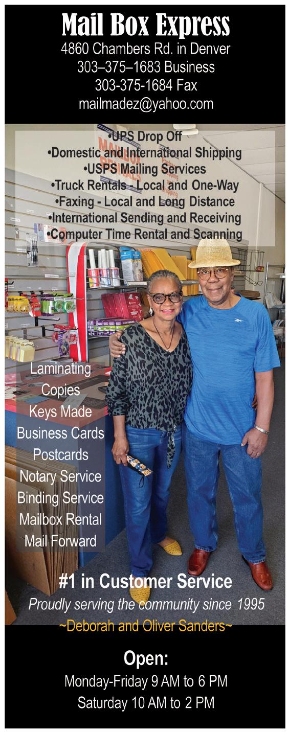 For advertising, subscriptions, or other information, call 303-292-6446, email publisher@urbanspectrum or visit the Website at www.denverurbanspectrum. com.