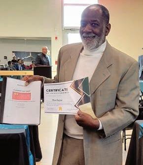 Malebo Marutle presents business plan Ron Taylor shows off certificate and business plan